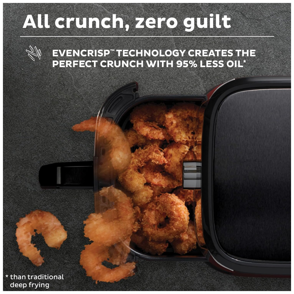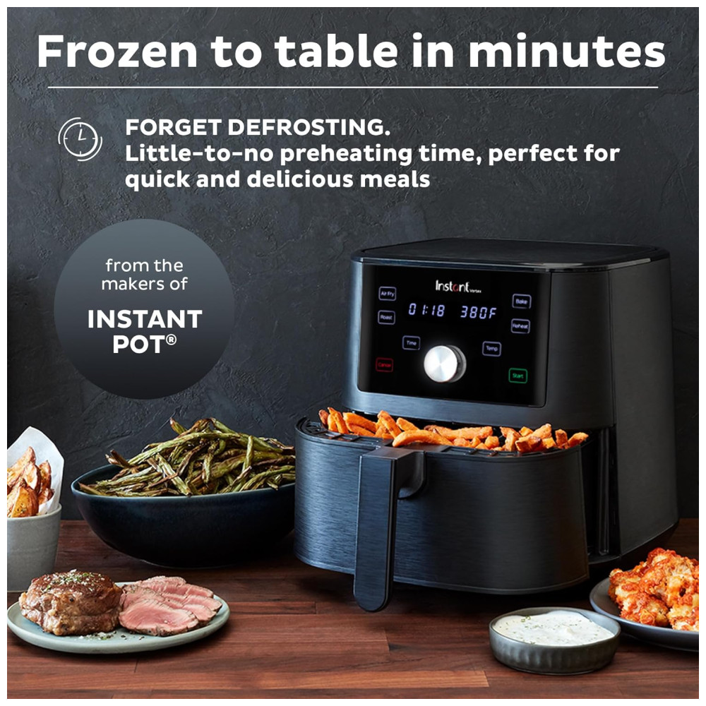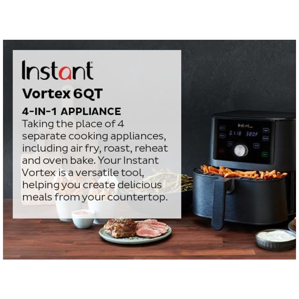 A Frigideira Instant Air Vortex 5,5L é fácil de usar, fácil de limpar, rápida, versátil e conveniente. Agora você pode fazer todos os seus favoritos fritos sem o óleo, a bagunça e os problemas da fritura. Desfrute de sabor delicioso com o toque de um botão. Use os Programas inteligentes predefinidos para fritar, assar, assar e aquecer todos os seus favoritos da família. Frite as asas de frango suculento, as batatas fritas crocantes e os anéis de cebola, frescos ou congelados. Picadas de couve flor assadas, espetos de camarão, batatas com alho e nuggets de frango. Asse calzones ou mini pizzas, rolos de canela fofos, deliciosos biscoitos e mordidas de brownie em borracha. Ou reaqueça o jantar da noite passada no almoço. Personalize o tempo e a temperatura para ter controle total sobre sua cozinha e salve suas predefinições para que suas refeições favoritas possam ser feitas com o toque de um botão. À medida que o calor é circulado por um ventilador potente, sua comida cozinha e obtém aquele sabor e textura fritos incríveis usando 95 menos óleo e graxa do que a fritura. Menos graxa significa menos bagunça. Diga adeus ao seu micro ondas, forno de pizza e forno de convecção tudo o que eles podem fazer, a Fritadeira a Ar Instant Vortex pode fazer melhor