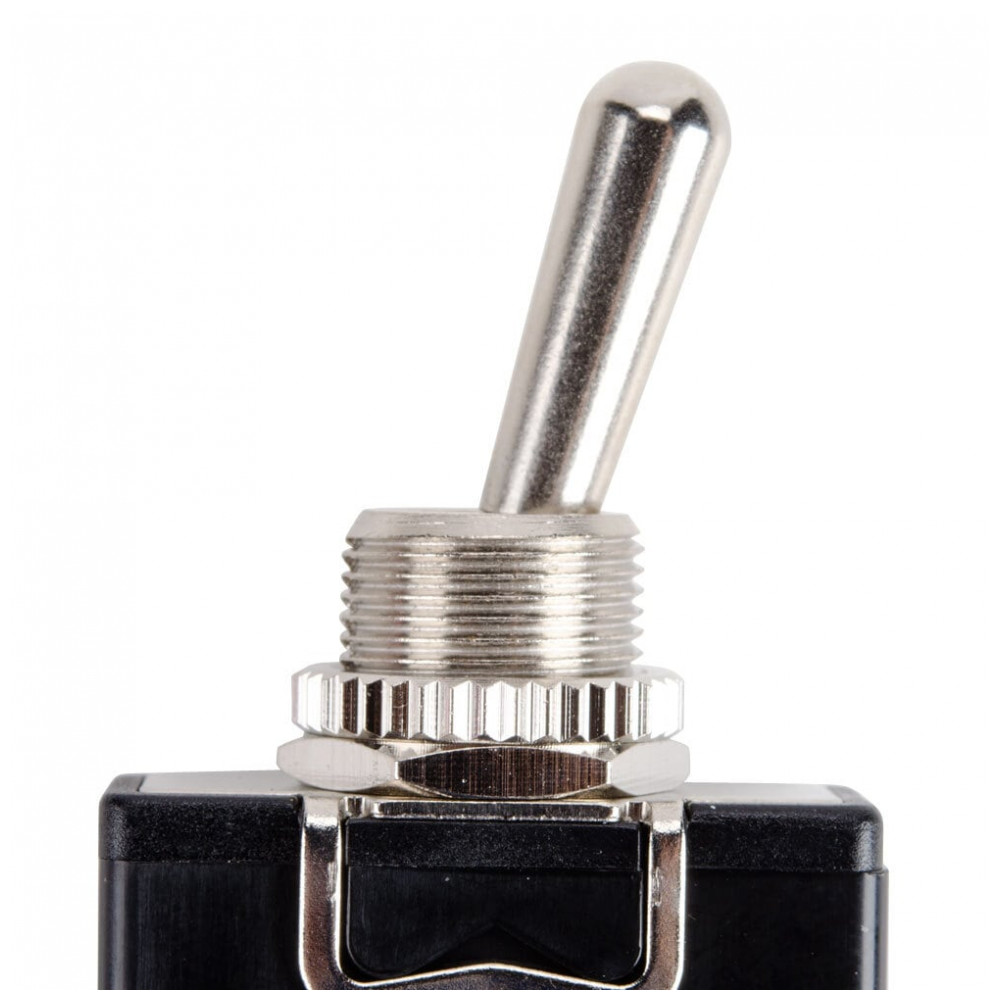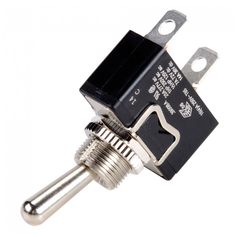 Termoplástico V0 autoextinguível com contatos bimetálicos em prata-níquel, resiste a 100.000 ciclos de comutação. Terminal de 1/4″ rápido para instalação sem solda em chassis de aço inoxidável.