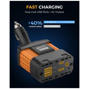 Inversor de Potência 100W DC 12V para AC Tomada AC e USB 2.1A Ultra Compacto 110v AMPEAK IVUFA0100 Laranja