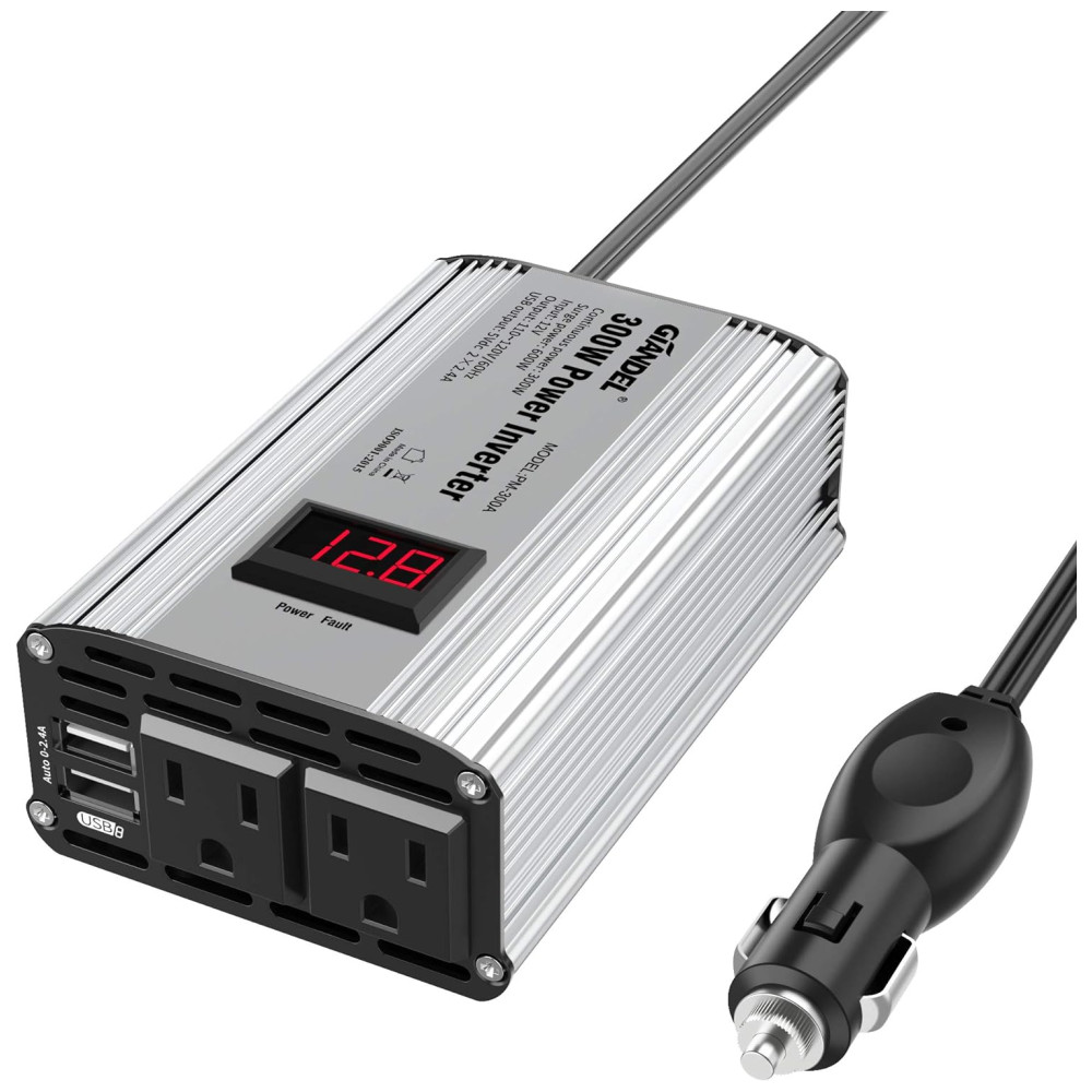 Fornece alimentação contínua de CC a CA de 300 Watts e energia instantânea de 600 Watts, com 2 tomadas CA e 2 portas USB Carregamento inteligente o inversor de energia é projetado com 2 portas de carregamento USB inteligentes, detecta automaticamente seus dispositivos para fornecer a velocidade de carregamento mais rápida até 2,ères por porta, 4,ères máx. Totalmente proteções de segurança Sobre tensão, Baixa tensão, Sobrecarga, Curto circuito, Sobreaquecimento, Proteção contra inversão de polaridade fusível. Tecnologia de partida suave, função de reinicialização automática A carcaça durável em liga de alumínio fornece proteção avançada contra quedas e batidas. O ventilador de refrigeração inteligente integrado ajuda a reduzir o calor e evita a escassez. Projeto isolado de entrada , saída. Ventilador de refrigeração de controle térmico de alta velocidade