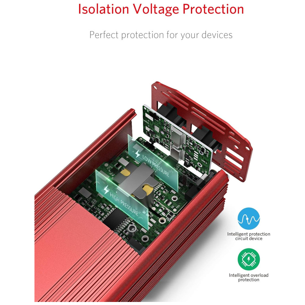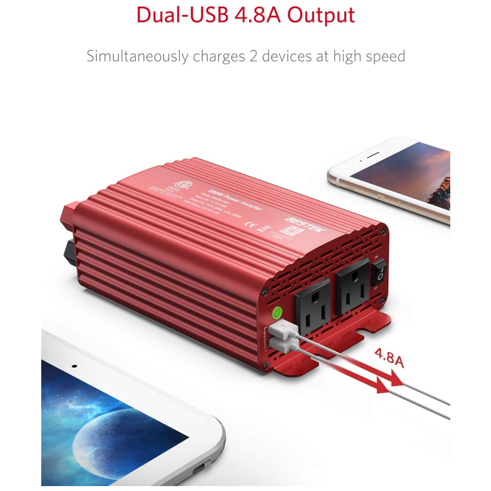 Inversor de Potência 500W 12V Para AC 2 Tomadas USB 110v BESTEK 13 Vermelho