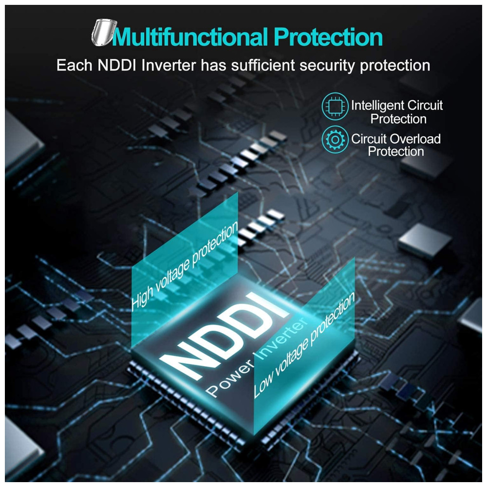 O inversor de energia NDDI com 2 tomadas AC 110V, 2 portas USB 3.1A, 1 plugue de isqueiro fornece energia estável para laptop, console de jogos, TV, iPad, smartphone e outros dispositivos eletrônicos. Inversor de 23, x x 6, 900 gramas, extremamente compacto e portátil, viagem de carro adequada, longa jornada, atividades ao ar livre, emergências etc. Conversor de carro feito de resistência ao fogo ABS e concha de metal, fusíveis embutidos, fornecem proteja totalmente seus dispositivos superaquecimento, carregamento de sobretensão, sobrecarga, curto circuito. O ventilador de refrigeração prolonga a vida útil do inversor. Um método mais eficiente é ler as instruções. Lista de embalagem inversor de potência de carro de 600W, 2 clipes de bateria, 1 plugue de isqueiro, 1 manual do usuário, 2 fusíveis 35A. A NDDI é uma empresa de alta tecnologia para o desenvolvimento, fabricação e ização de conversores de automóveis avançados, sistema solar, carregador de energia de alta frequência e etc. a alta qualidade. Nosso objetivo é fornecer as melhores soluções profissionais de energia para você NOTA Evite operar o inversor enquanto a mão estiver molhada. Evite inserir a CA no inversor de energia. Evite usar produtos que excedam o valor máximo do produto. Evite usar o plugue do isqueiro ao usar o inversor em dispositivos acima de 600W. Evite deixar o inversor de energia nos estados LIGADO enquanto o carro estiver desligado. Evite a exposição prolongada à luz solar, resultando em temperatura excessiva ou escaldadura do produto. Especificações Terno para bateria de 12V. Saída 110V. Potência 600W. Potência de pico 1200W. Forma de onda de saída onda senoidal modificada. Portas de carregamento USB 3.1Amp compartilhada. Frequência 50 , 60Hz. Peso do inversor 900 gramas. Dimensões L x W x H 23, x x 6, na embalagem incluída 1 inversor de energia de 600W, 2 clipes de bateria, 2 fusíveis, 1 plugue do isqueiro, 1 manual do usuário