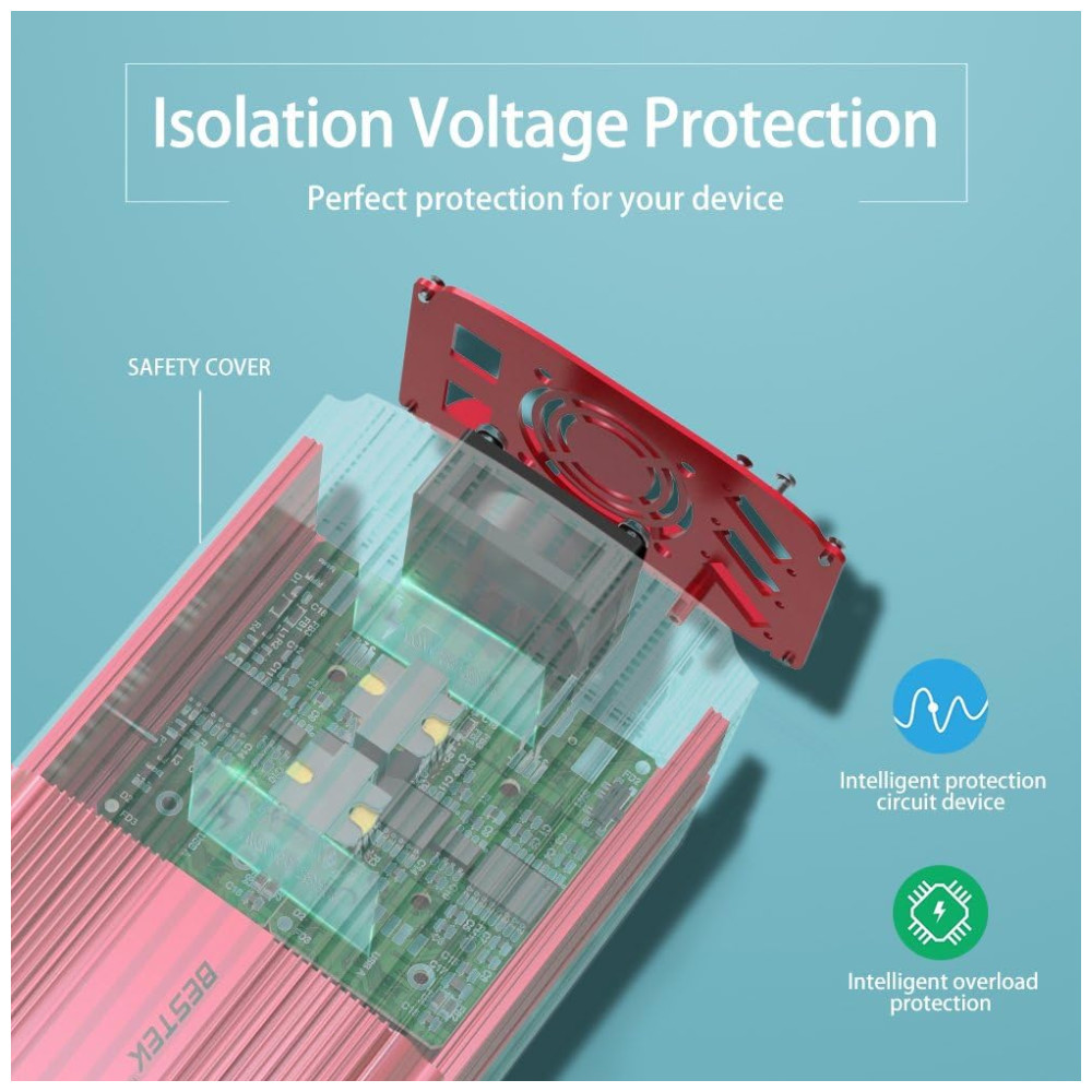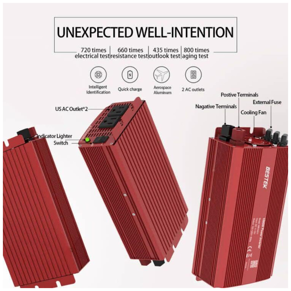 Inversor de Potência Automotivo 1000W 12V BESTEK 4350464960 Vermelho
