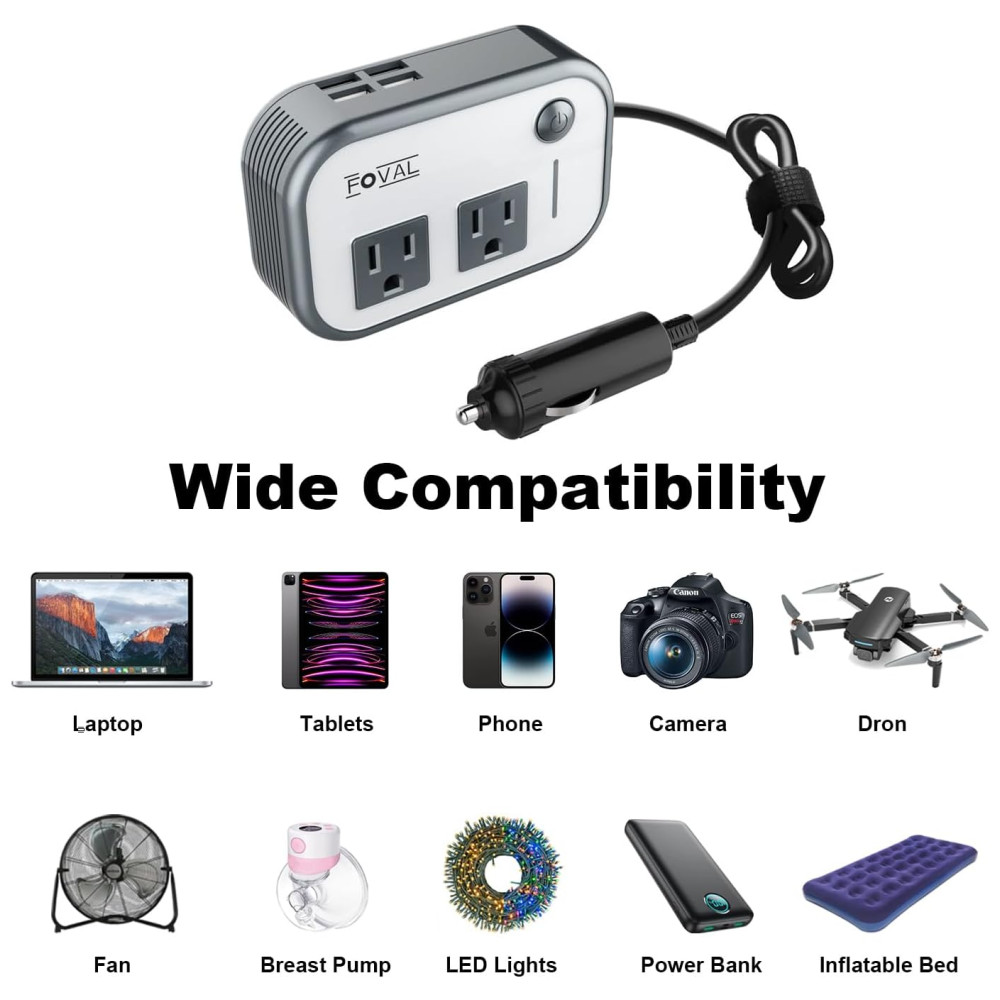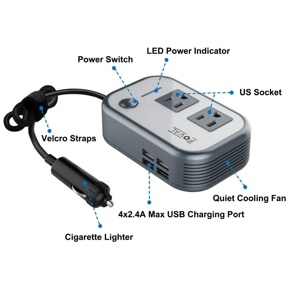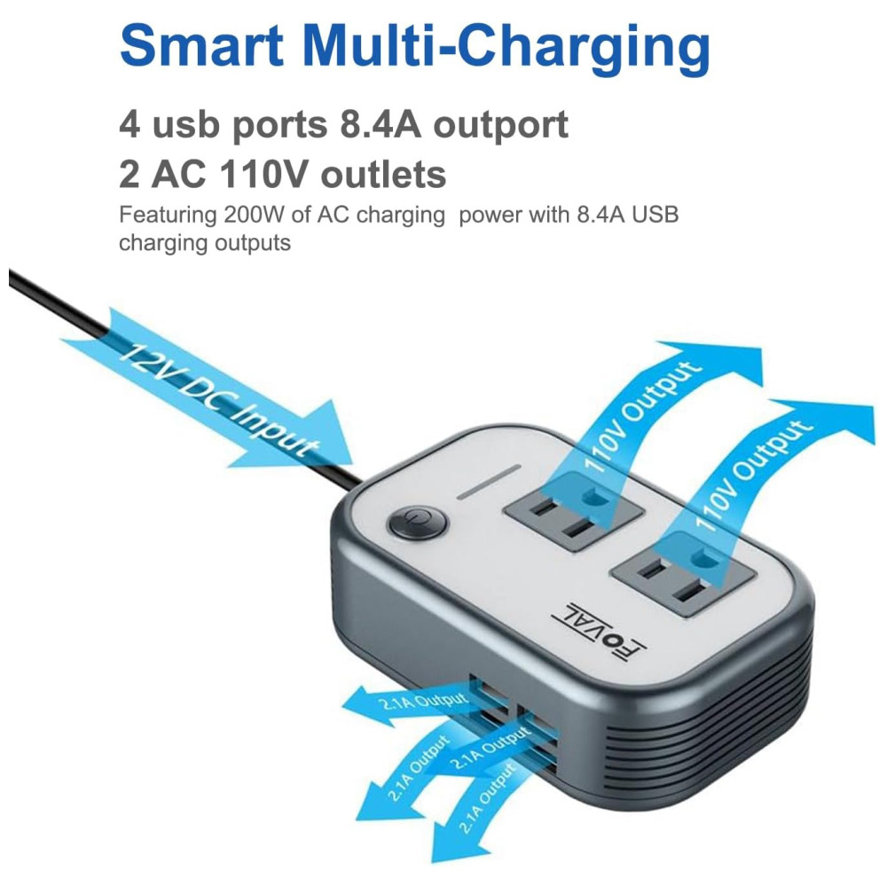 Inversor de Potência Automotivo 200W 12V com Carregador de 4 portas USB FOVAL 5864136439 Branco