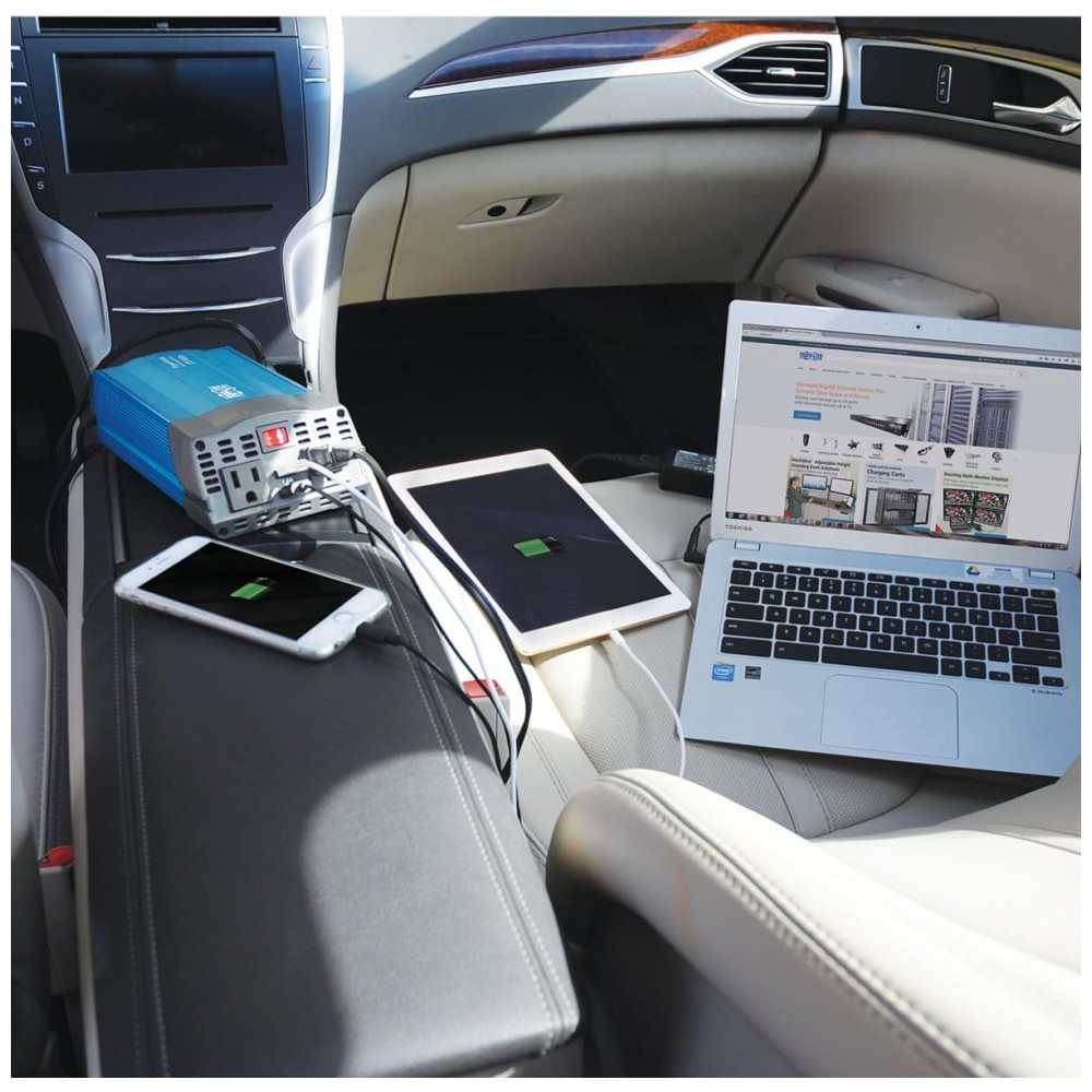 Inversor de Potência Automotivo 375W 12V com Porta USB e 2 Tomadas TRIPP LITE PV375USB Azul