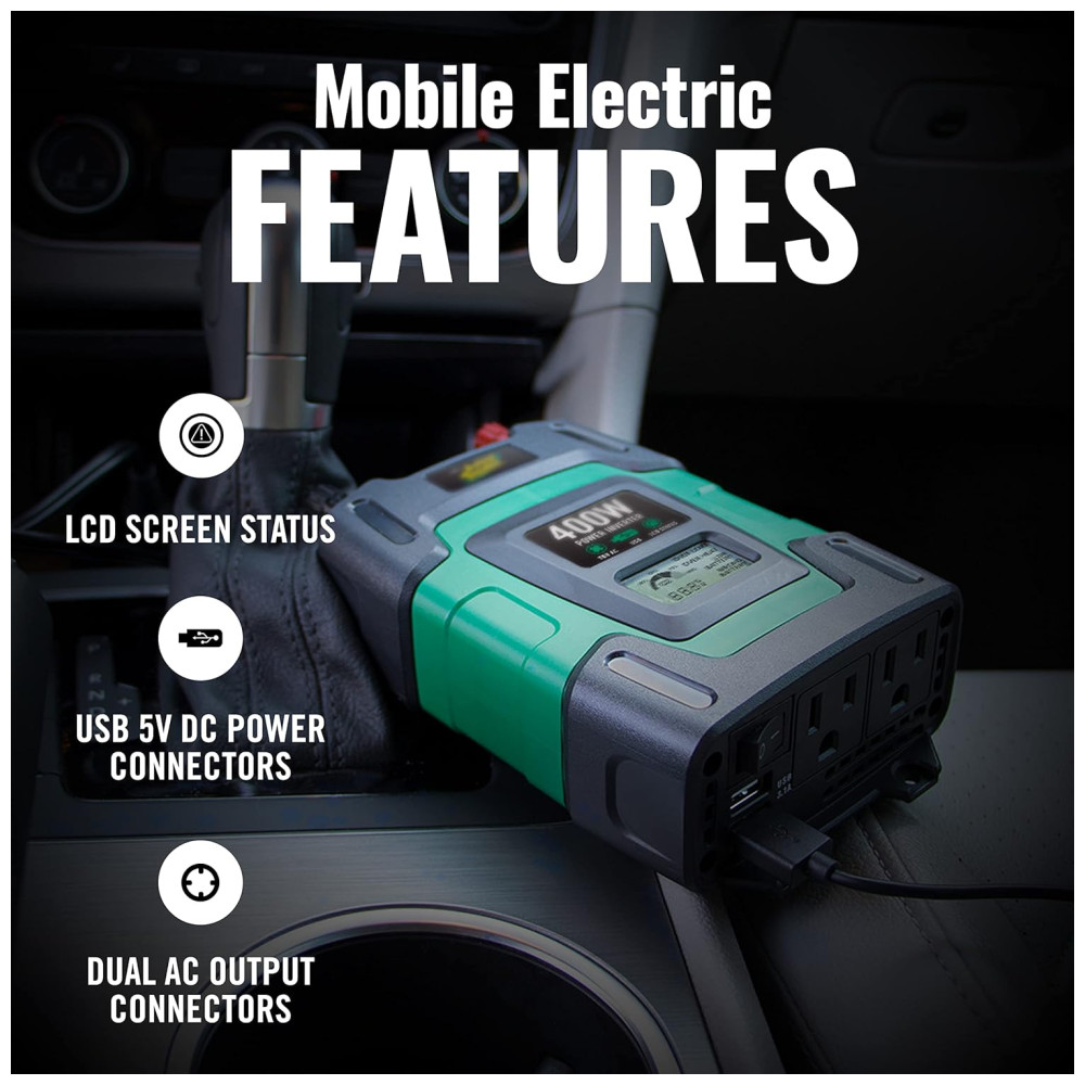 Inversor de Potência Automotivo 400W 2 portas USB BATTERY TENDER 026 0003 DL WH Verde