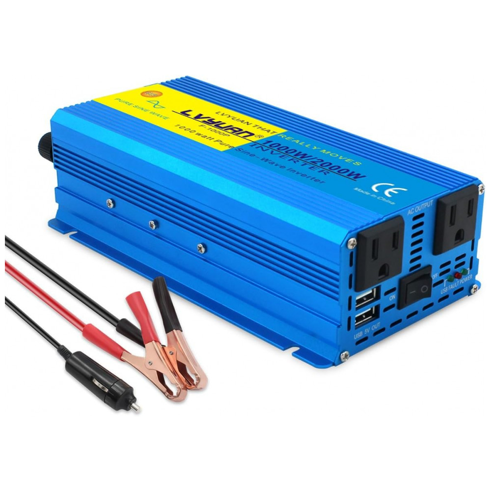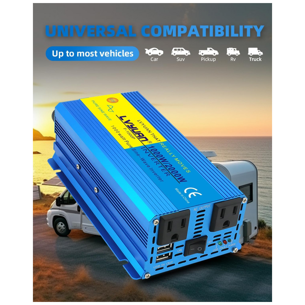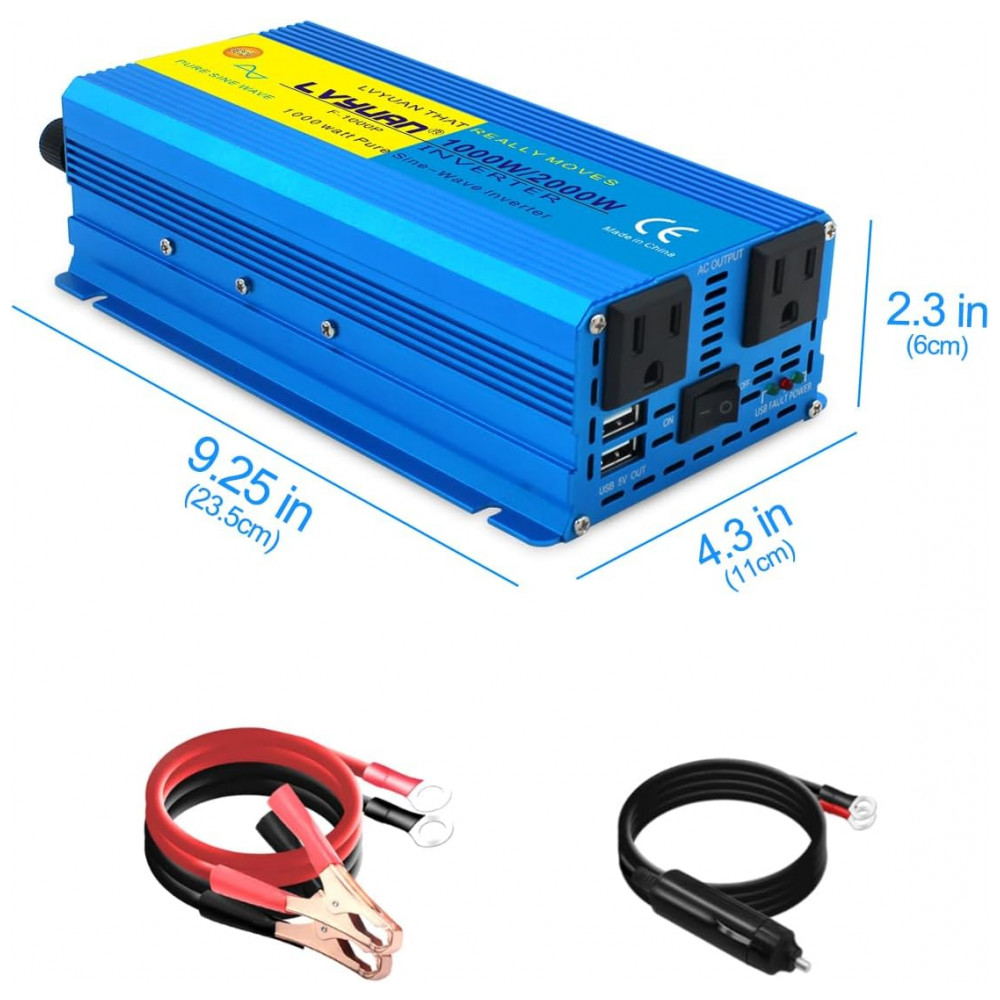 Inversor de Potência Automotivo com Portas USB e Tomadas Duplas LVYUAN 1000W Azul