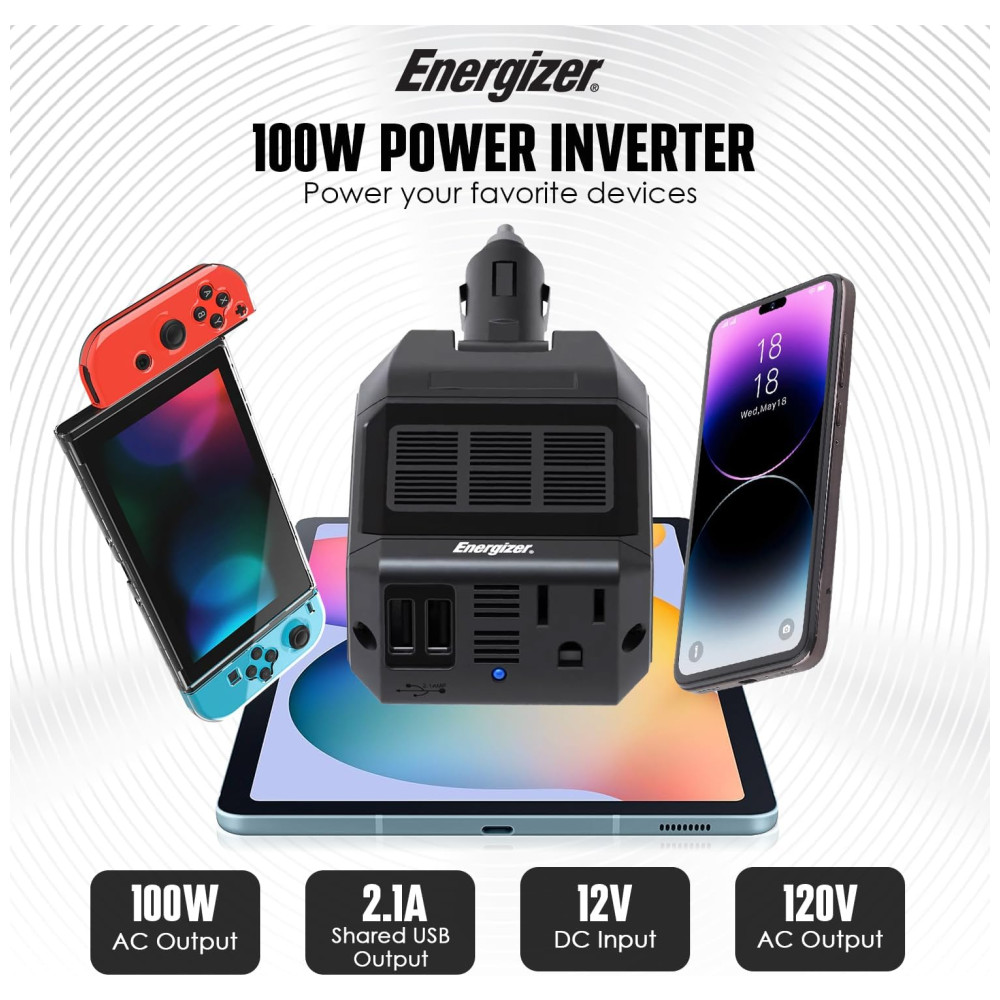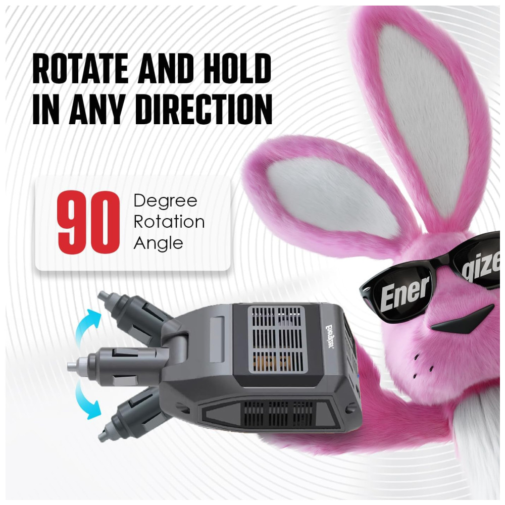 Inversor de Potência Compacto 12V DC para CA 100W Cabeça Rotativa 110v ENERGIZER B00VMRHE7C Preto