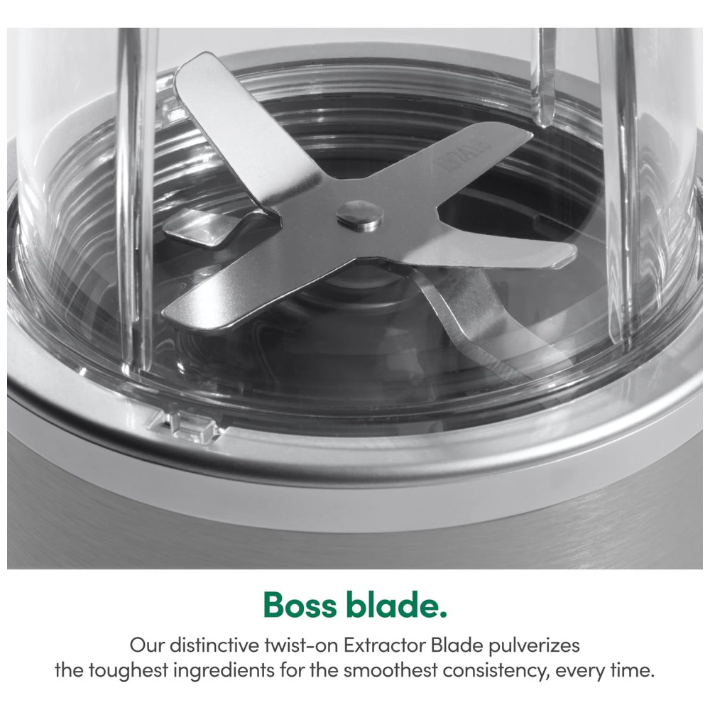 As poderosas lâminas extratoras de aço inoxidável utilizam a ação ciclônica para quebrar os ingredientes mais difíceis, transformando-os em bebidas e cremes saudáveis. Os copos de plástico de alto desempenho, livres de BPA, são duráveis e resistentes.