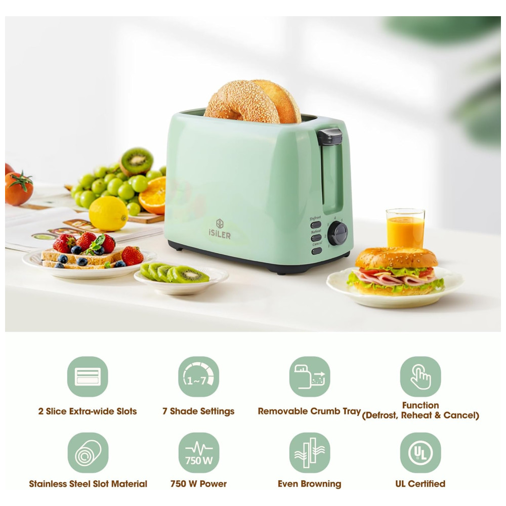 iSiLER Torradeira de 2 Fatias com 7 Níveis de Tostagem 750W 110V Verde