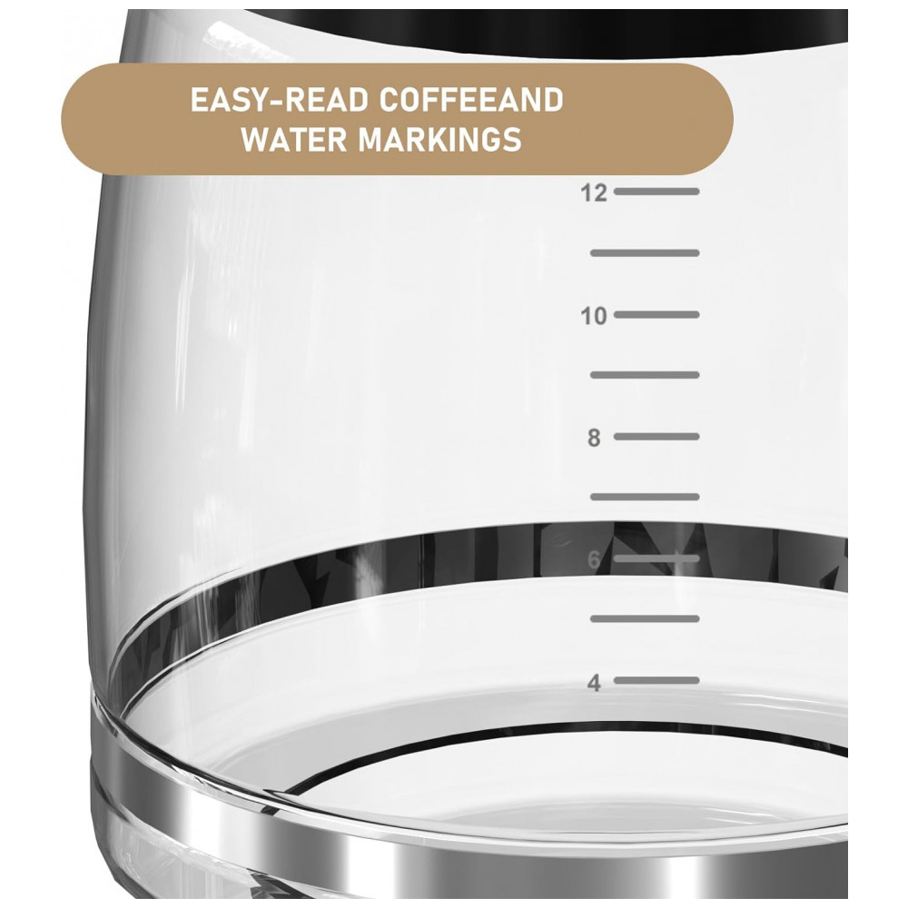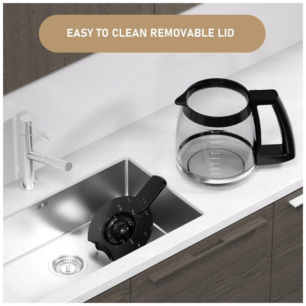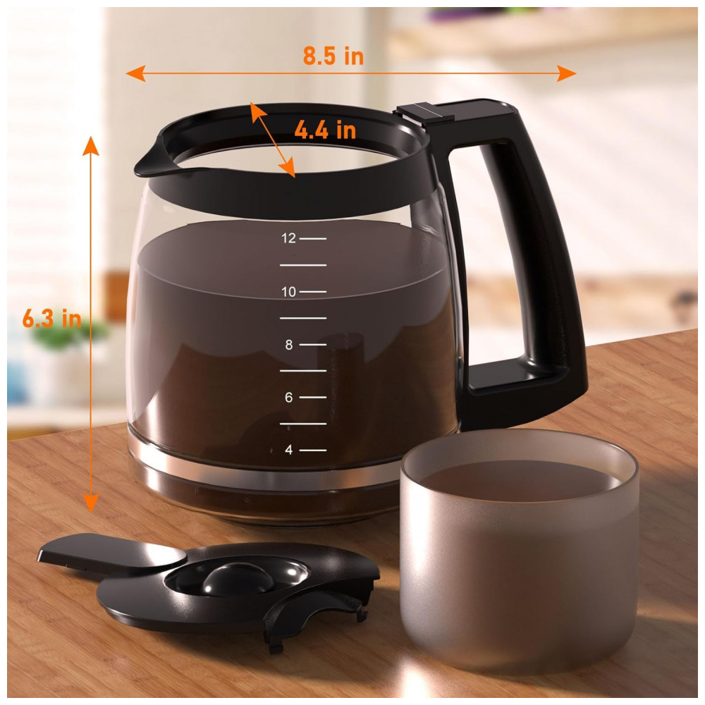 Esta cafeteira de 12 xícaras foi projetada exclusivamente para substituir uma perdida, quebrada, velha ou desgastada. O design inteligente da alça permite uma pegada e um vazamento confortáveis.