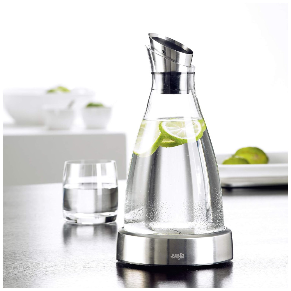 Esta jarra de vidro EMSA com base de aço inoxidável é uma escolha elegante e prática para servir suas bebidas de forma sofisticada.