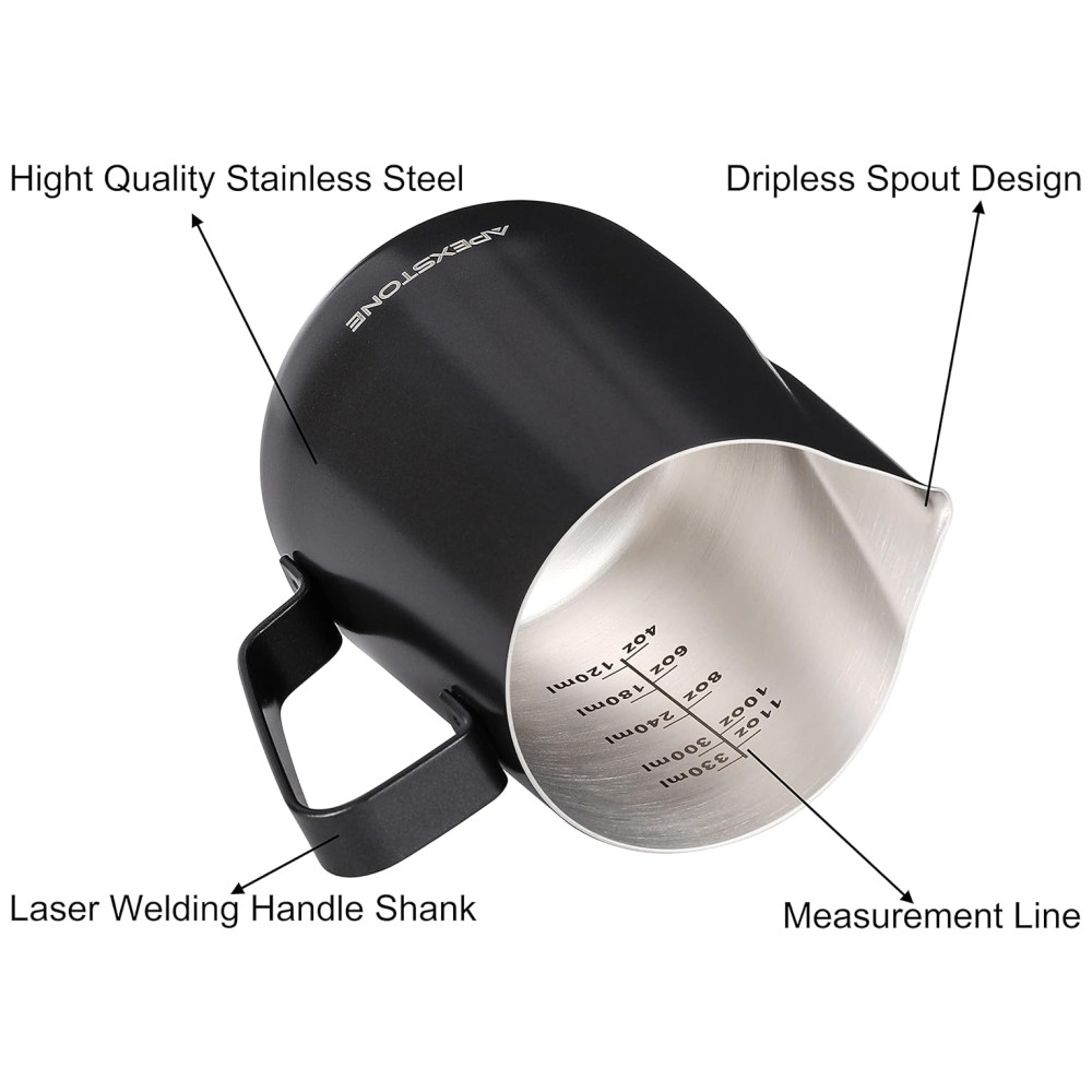 Para vaporizar seu leite ou creme para ficar macio e sedoso com poucas bolhas crie latte art perfeito e pessoal para o seu café ou cappuccinos medir seu leite, água, líquido, espuma e medir em um jarro