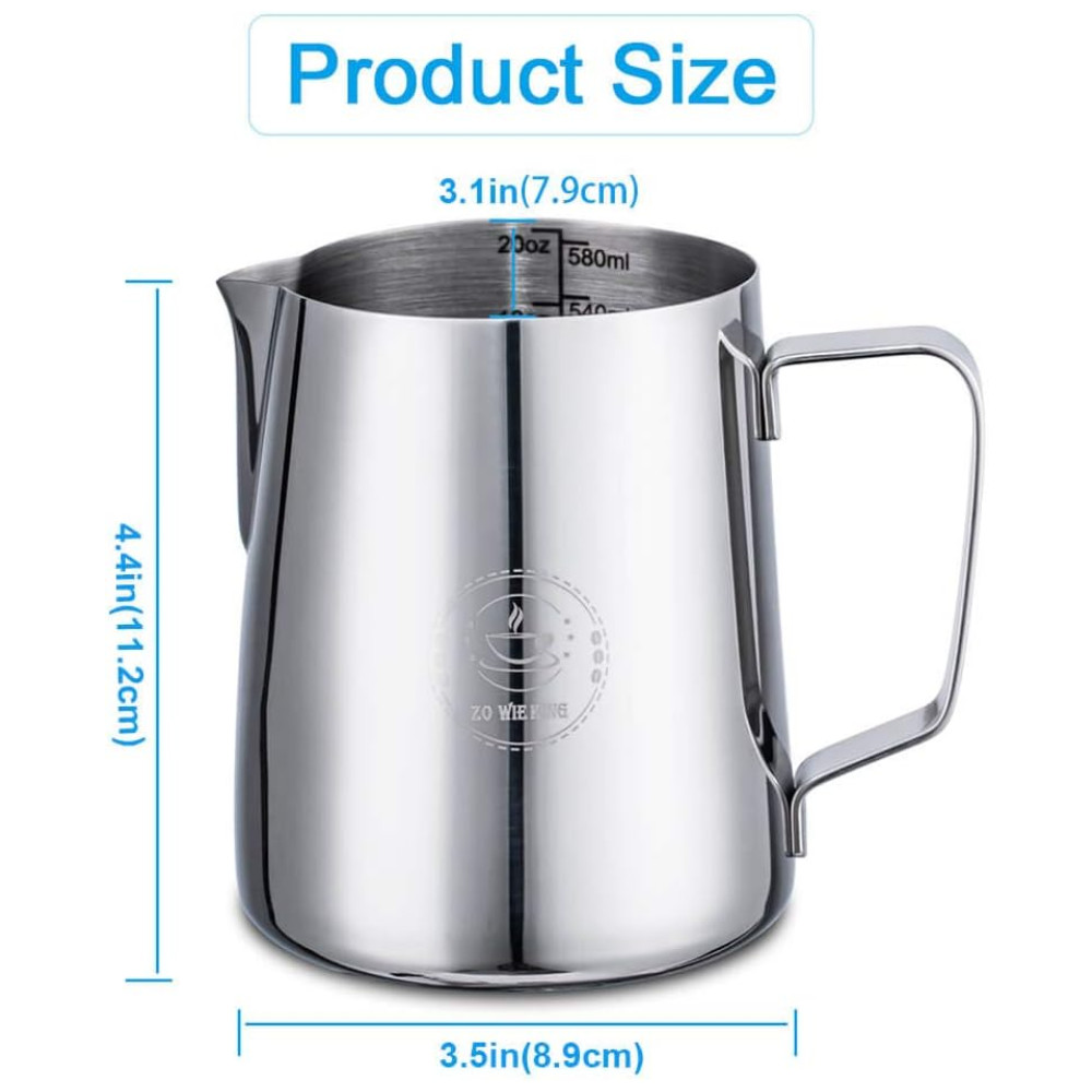 Jarra Leiteira Cremeira 580 mL Aço Inoxidável de Grau ZOWIE KING Prateado