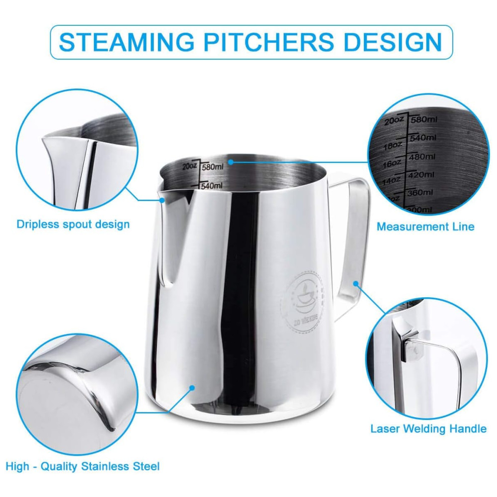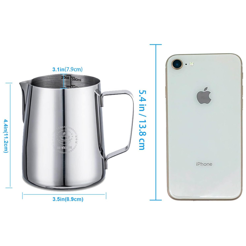 Conveniência e precisão Esta precisa capacidade de 580 mL de batedor de leite gravou a medida do líquido em ambos os lados, torna o fácil de ler, é perfeito para 2 ou 3 xícaras de cappuccinos ou expresso.