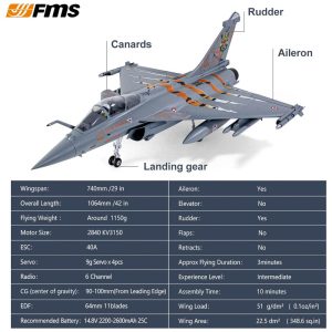 Projetado pela empresa francesa, o Rafale é um caça de asa delta altamente manobrável com um canard voador completo. Com excelente combate aéreo, operações de porta aviões e desempenho de ataque ar superfície, o Rafale conseguiu obter sucesso mundial. Embora o FMS 80mm Rafale tenha atraído grande atenção, também notamos a disposição dos fãs de voo em coletar Rafales de diferentes tamanhos e esquemas de acabamento. Após duas rodadas de votação em casa e no exterior, o NATO Tiger Meet de se destacou de todos os outros concorrentes. Após seis rodadas de testes, o FMS 64mm Rafale NATO Tiger Meet atendeu às expectativas de todos e agora foi lançado oficialmente. Desenvolvido para replicar a aparência e o desempenho da aeronave real, a FMS dedicou suas décadas de experiência ao projeto do Rafale de . O Rafale 64mm tem alto grau de restauração, dentro do alcance máximo permitido pelo orçamento. Detalhes como contornos em escala, asa delta, figura do piloto, interior do cockpit, painéis, mentos removíveis, tanques de combustível auxiliares, sonda de reabastecimento, sensor de mira e grades de exaustão são todos apresentados no modelo. Como todas as outras aeronaves FMS, o Rafale de foi projetado para reduzir o tempo de construção ao mínimo e construtores experientes podem concluir o processo de construção em apenas 5 minutos. O EDF de 11 pás de com motor sem escova 2840 e ESC de alto desempenho de 40A realiza facilmente manobras de caças com som e velocidade realistas. Vá pegar uma obra prima e adicione o FMS Rafale ao seu hangar painéis, mentos removíveis, tanques de combustível auxiliares, sonda de reabastecimento, sensor de mira, grades de exaustão são todos apresentados no modelo. Como todas as outras aeronaves FMS, o Rafale de foi projetado para reduzir o tempo de construção ao mínimo e construtores experientes podem concluir o processo de construção em apenas 5 minutos. O EDF de 11 pás de com motor sem escova 2840 e ESC de alto desempenho de 40A realiza facilmente manobras de caças com som e velocidade realistas. Vá pegar uma obra prima e adicione o FMS Rafale ao seu hangar painéis, mentos removíveis, tanques de combustível auxiliares, sonda de reabastecimento, sensor de mira, grades de exaustão são todos apresentados no modelo. Como todas as outras aeronaves FMS, o Rafale de foi projetado para reduzir o tempo de construção ao mínimo e construtores experientes podem concluir o processo de construção em apenas 5 minutos. O EDF de 11 pás de com motor sem escova 2840 e ESC de alto desempenho de 40A realiza facilmente manobras de caças com som e velocidade realistas. Vá pegar uma obra prima e adicione o FMS Rafale ao seu hangar O EDF de 11 pás de com motor sem escova 2840 e ESC de alto desempenho de 40A realiza facilmente manobras de caças com som e velocidade realistas. Vá pegar uma obra prima e adicione o FMS Rafale ao seu hangar O EDF de 11 pás de com motor sem escova 2840 e ESC de alto desempenho de 40A realiza facilmente manobras de caças com som e velocidade realistas. Vá pegar uma obra prima e adicione o FMS Rafale ao seu hangar