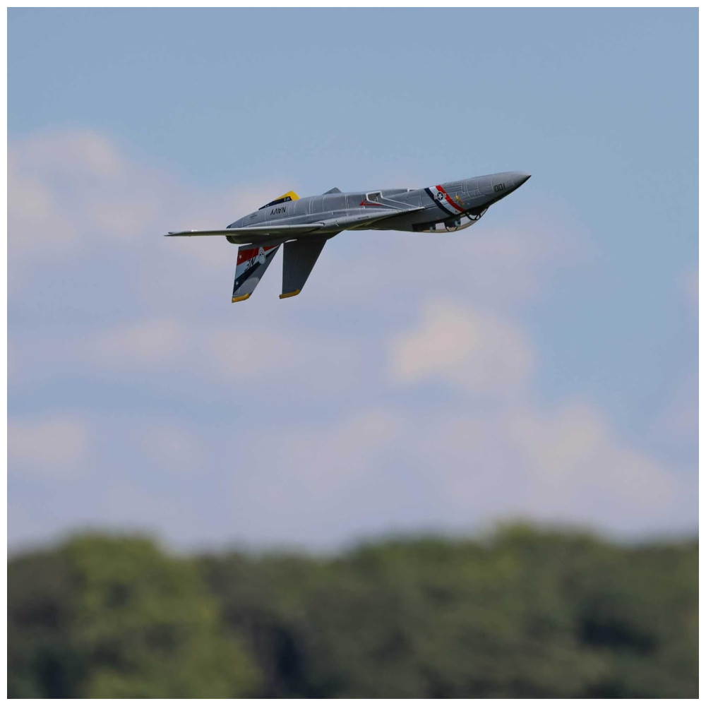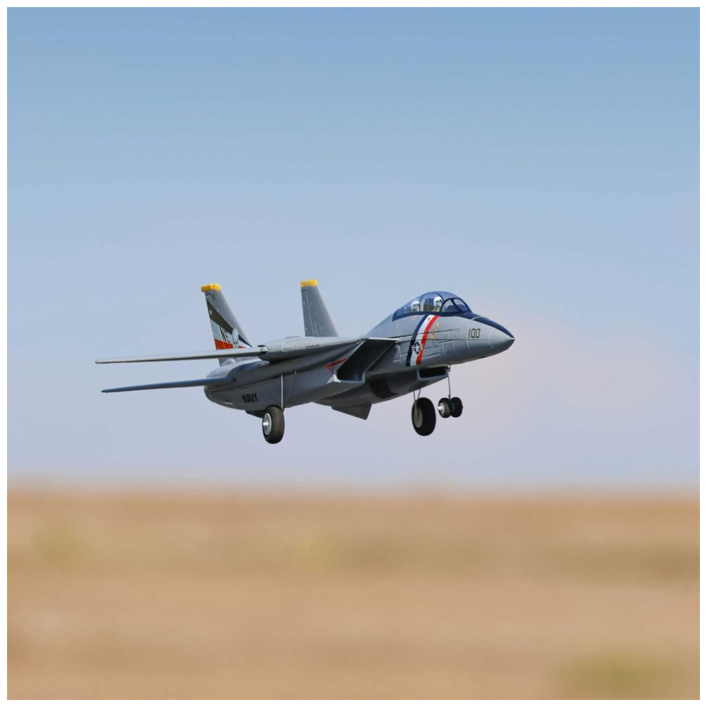 Muitos pilotos de RC sonharam em pilotar um F-14 um dia – e o E-flite F-14 Tomcat Twin 40mm EDF torna esse sonho uma realidade! Ele chega totalmente montado e quase pronto para voar assim que sai da caixa, incluindo um receptor instalado de fábrica com Spektrum AS3X exclusivo e tecnologias SAFE Select de uso opcional. Ele está pronto para ser vinculado ao seu transmissor de computador equipado com DSMX/DMS2 de mais de 6 canais, além de receber dados de telemetria em tempo real, incluindo tensão da bateria, corrente, RPM do motor e muito mais por meio de rádios compatíveis equipados com Spektrum AirWare. As ventoinhas duplas de 40 mm e os motores outrunner sem escova são compatíveis com baterias 4S 2200mAh 30+C acessíveis e comuns para oferecer uma excelente combinação de desempenho e tempos de voo. Golpes de vôo completo e asas funcionais de varredura variável de 3 posições proporcionam uma experiência de vôo incomparável que você não consegue em nenhum outro lugar. A fuselagem EPO totalmente moldada é durável, leve e com acabamento de fábrica para homenagear o esquadrão VF-2 “Bounty Hunters” da Marinha dos EUA. O trem de pouso fixo e a roda do nariz direcionável facilitam o taxiamento, a decolagem e o pouso em superfícies lisas – ou a remoção do trem de pouso para obter mais velocidade e desempenho vertical ao lançar manualmente e pousar na grama. Com o F-14 Tomcat Twin 40mm EDF você está mais perto de ser um TOPGUN do que nunca!