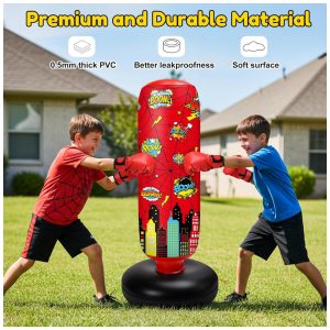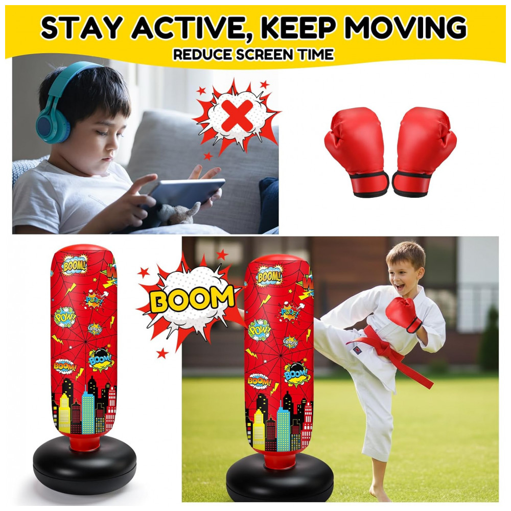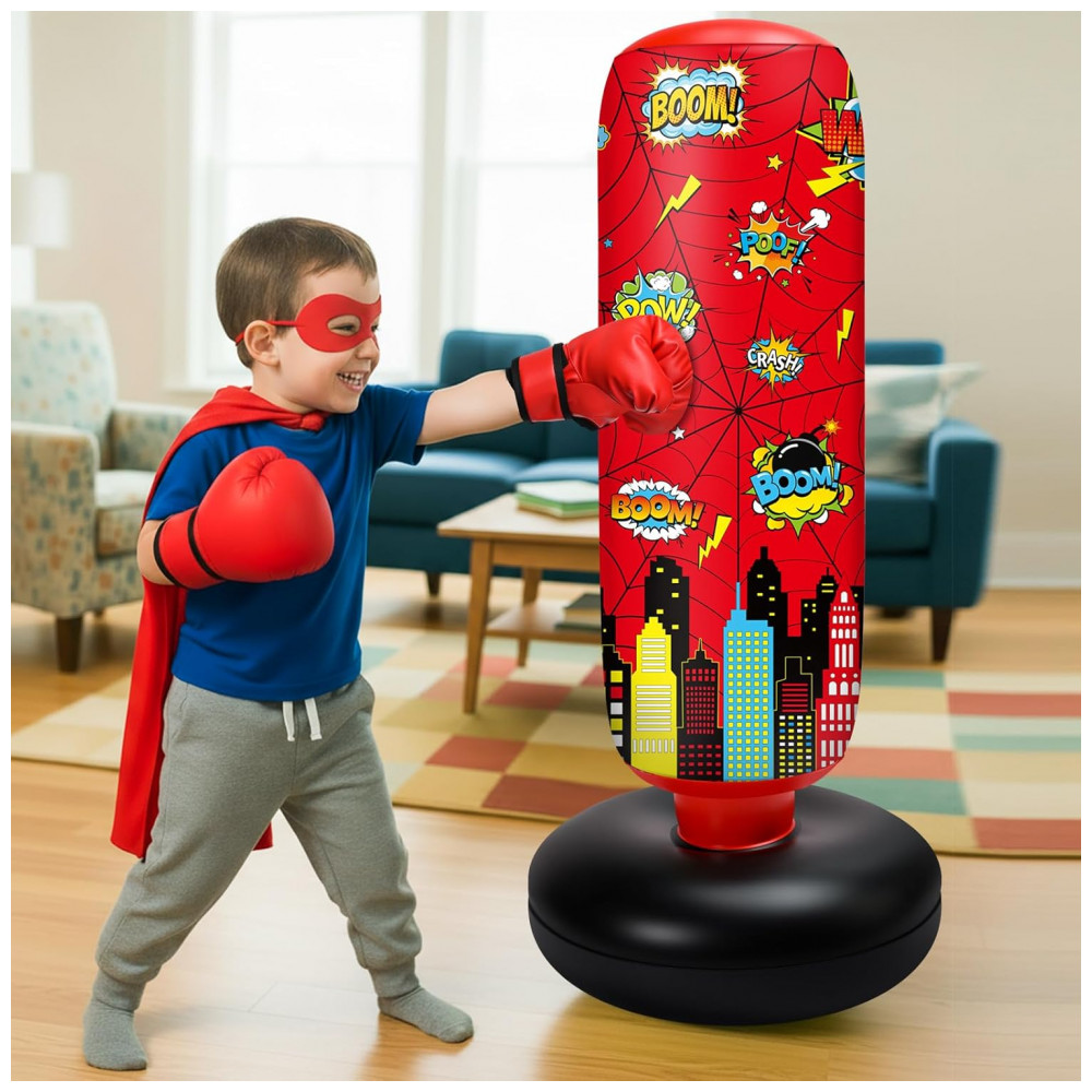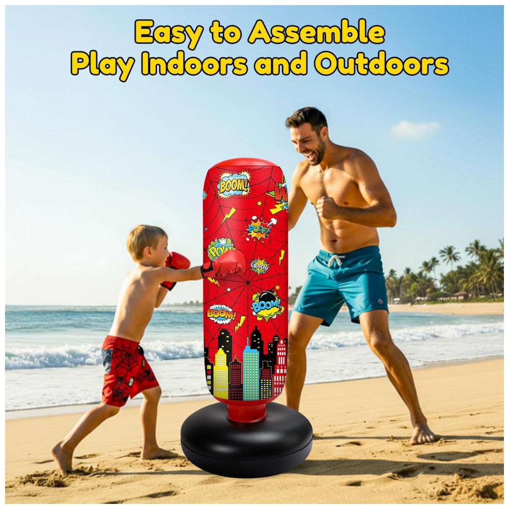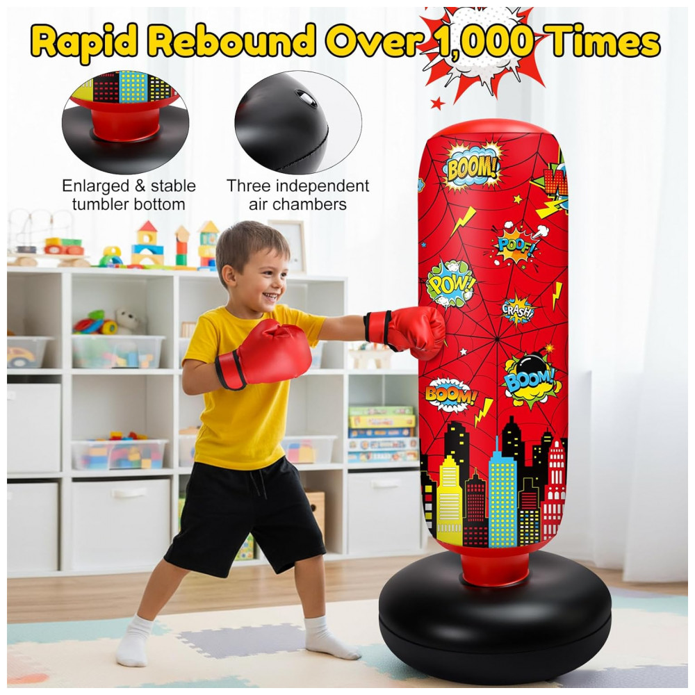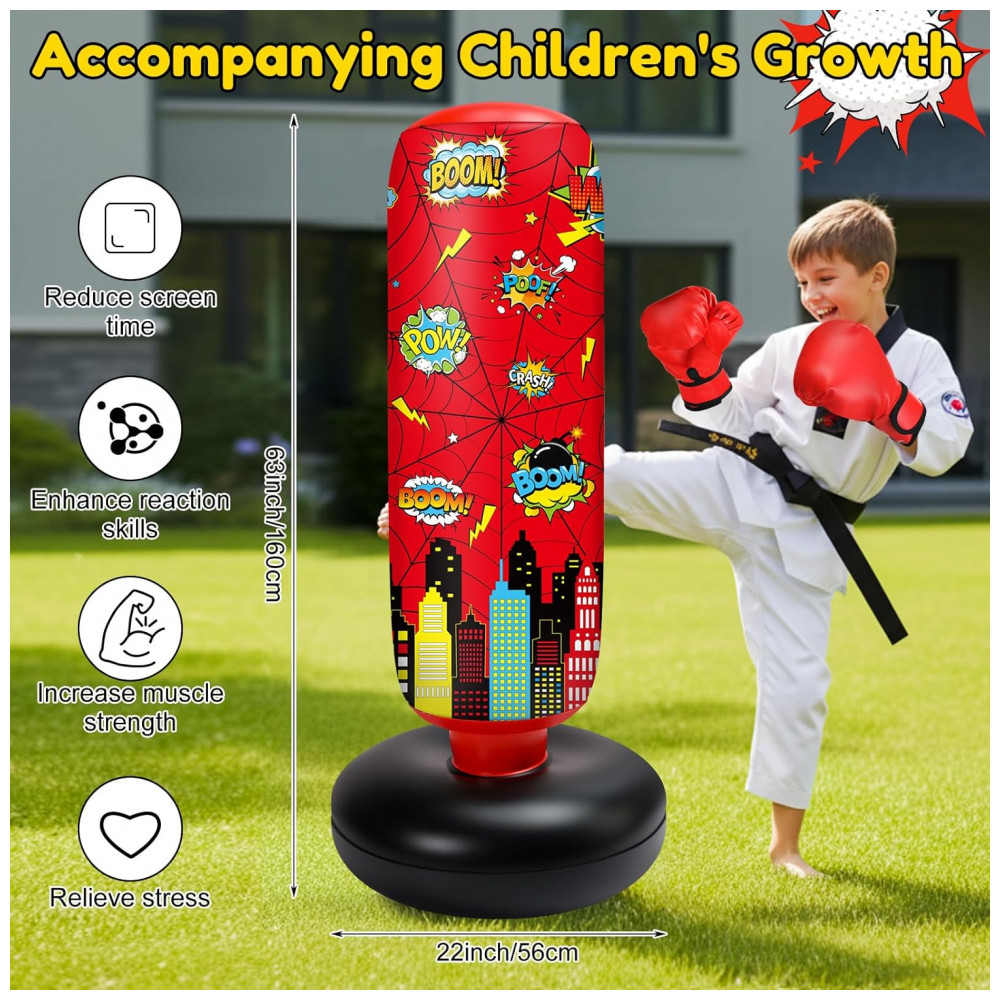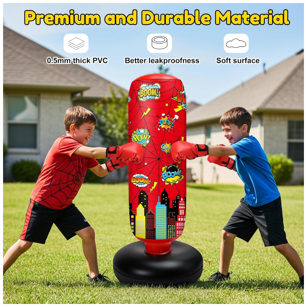 Jenaai Bolsa de Pancadas Inflável Infantil 102 cm com Design Aranha Luvas e Bomba de Ar para Exercícios Diários e Artes Marciais