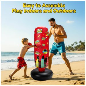 Itens inclusos na embalagem: 1 saco de pancadas inflável, 1 par de luvas de boxe, 1 bomba de ar