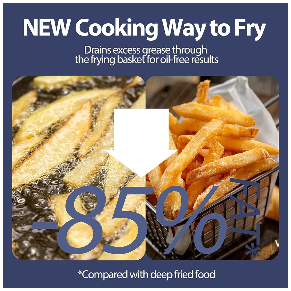 Cozimento sem óleo A tecnologia de circulação de ar quente rápido de 360 permite que você aproveite a comida crocante por fora e macia por dentro. É oil free e utiliza apenas o óleo da própria alimentação, trazendo a você vida saudável com baixa oleosidade.
