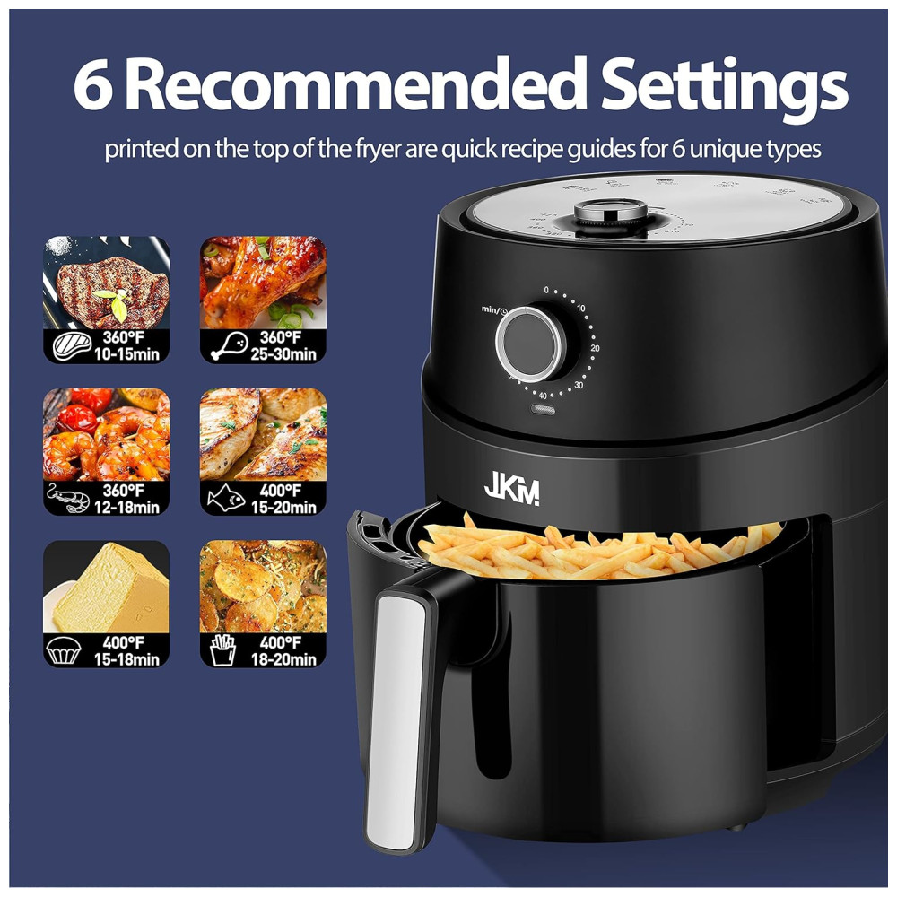 JKM Fritadeira Elétrica AirFryer 4L com Temporizador e Painel de Controle Digital 110V 1500W Preta