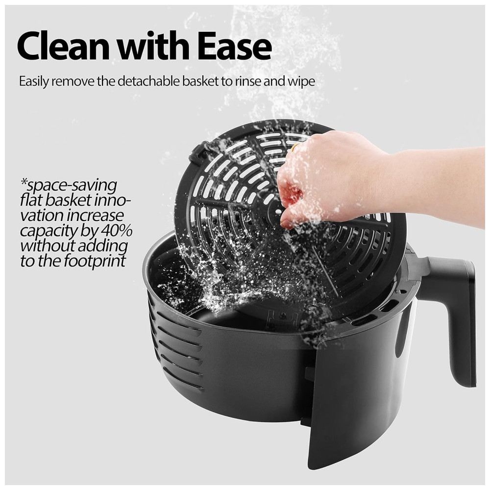 Fácil de limpar A cesta antiaderente removível oferece conveniência de limpeza, limpe a cesta com esponja não abrasiva. Exterior de aço inoxidável é fácil de limpar com pano úmido.