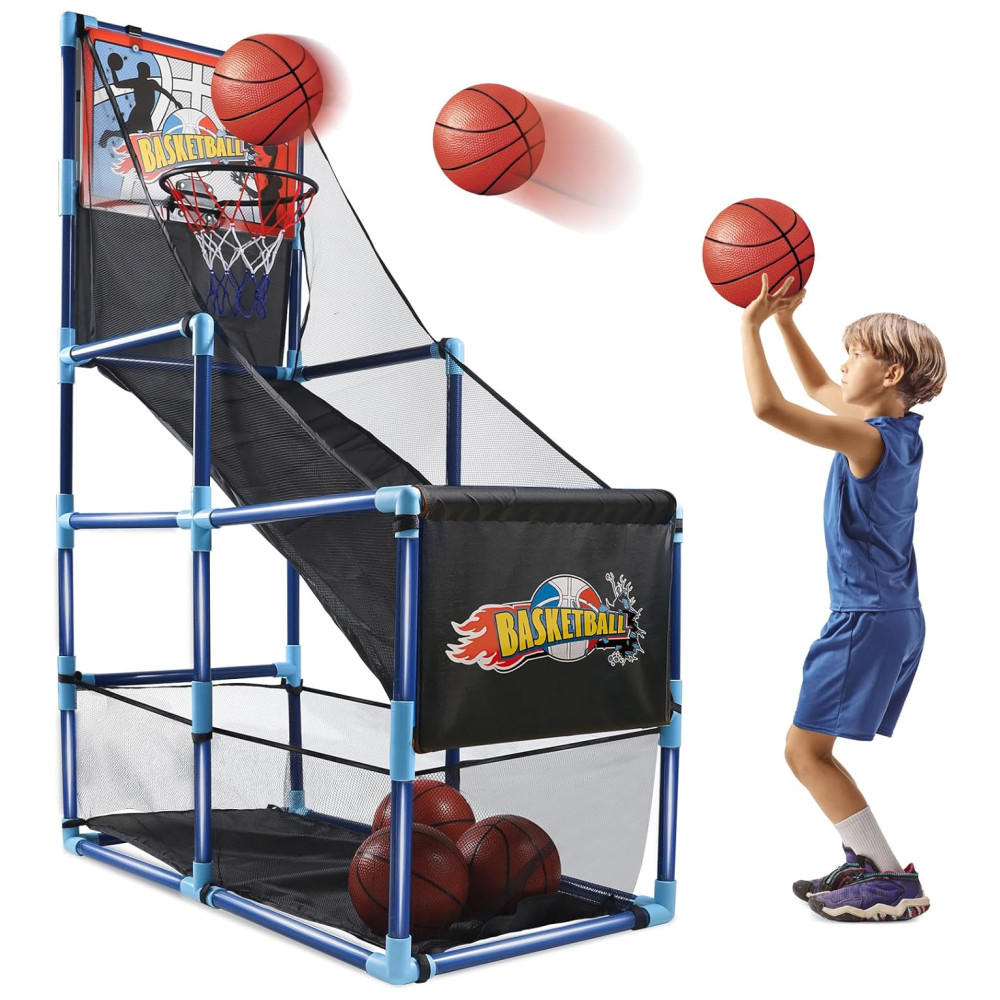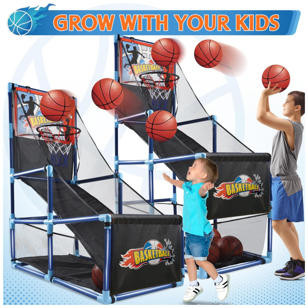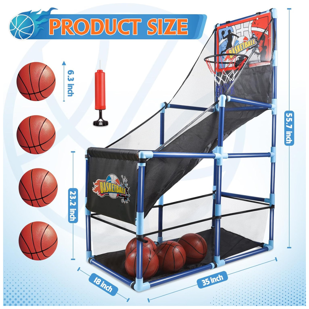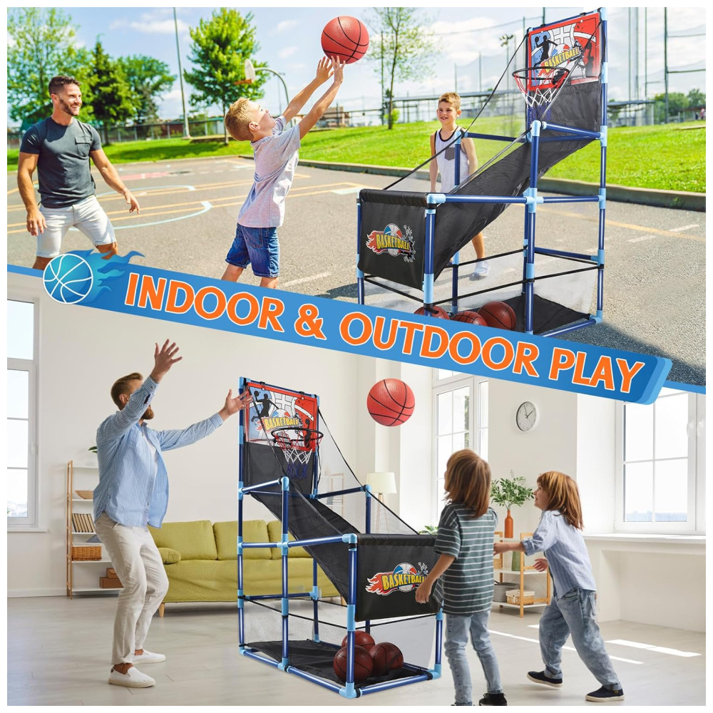 Completo e Divertido: Este conjunto de jogo de basquete arcade inclui um tabuleiro de basquete, rede de qualidade premium, 4 bolas de basquete 16 cm (6,3 polegadas), 1 bomba de ar e todos os acessórios de instalação necessários. Com as instruções simples, em apenas minutos as crianças podem começar a se divertir, seja em ambientes internos ou externos, brincando com amigos e familiares.