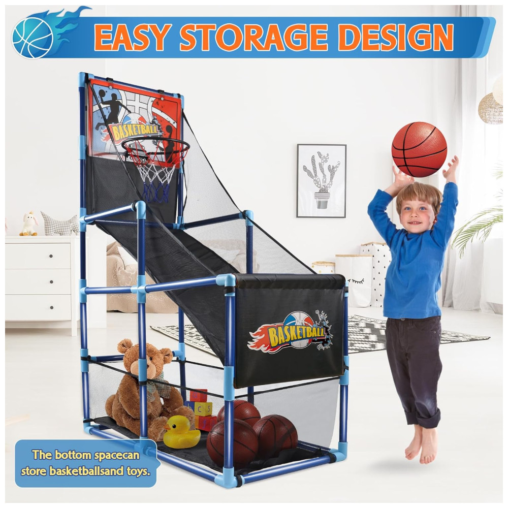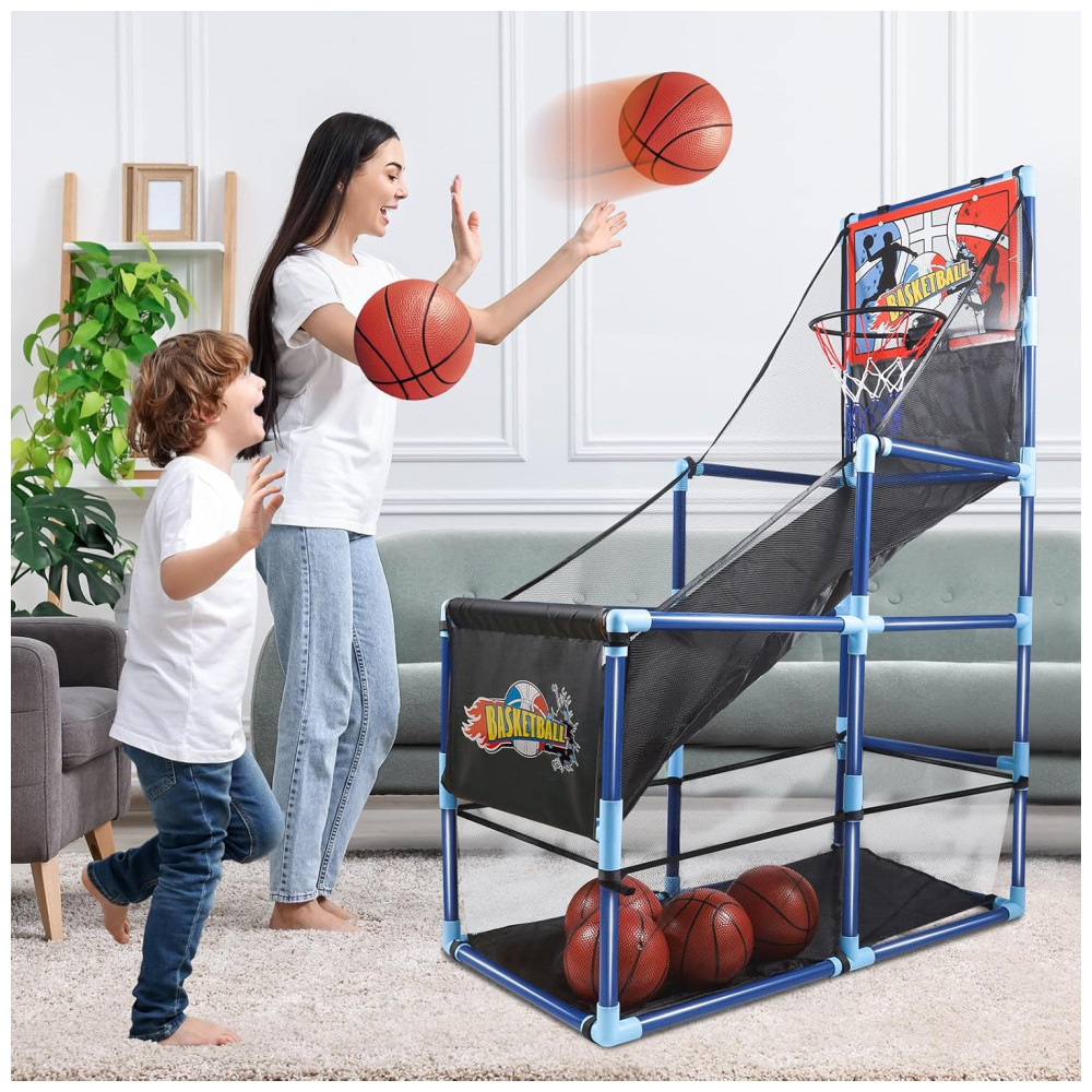 Jogo de Basquete Arcade Infantil com 4 Bolas e Bomba de Ar para Ambientes Internos e Externos OCHIDO Azul e Preta