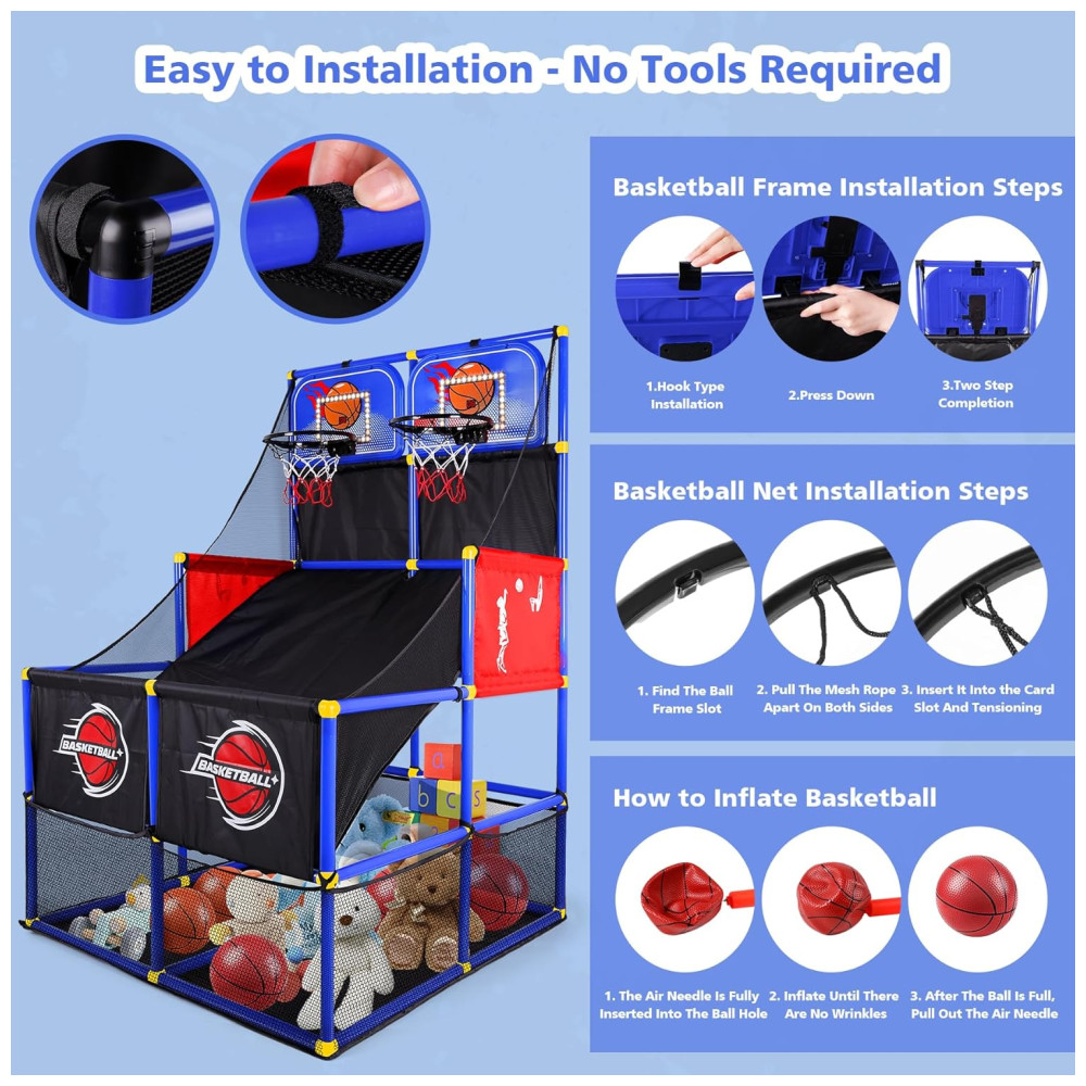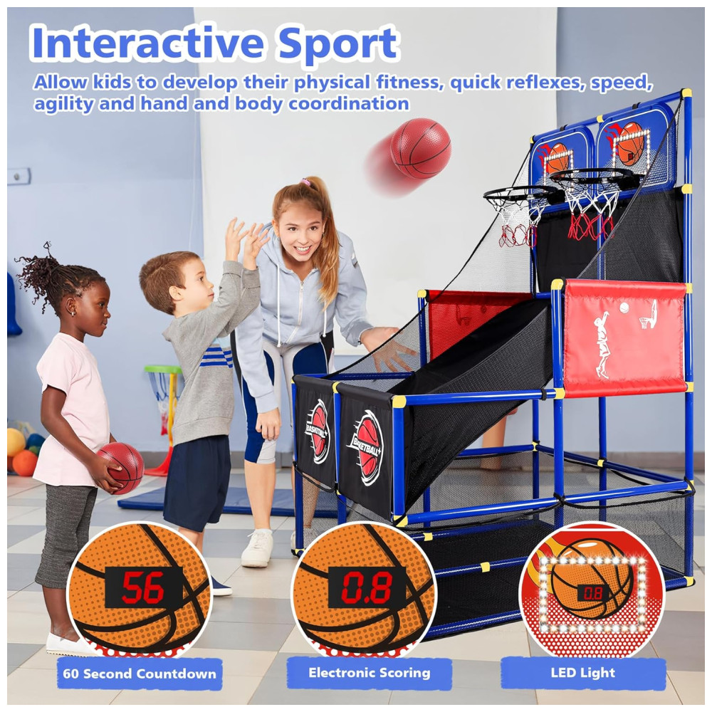 Jogo de Basquete Arcade Infantil para 2 Jogadores com 6 Bolas Placar Eletrônico e Luz LED para Crianças de 3 a 8 Anos M SANMERSEN Azul