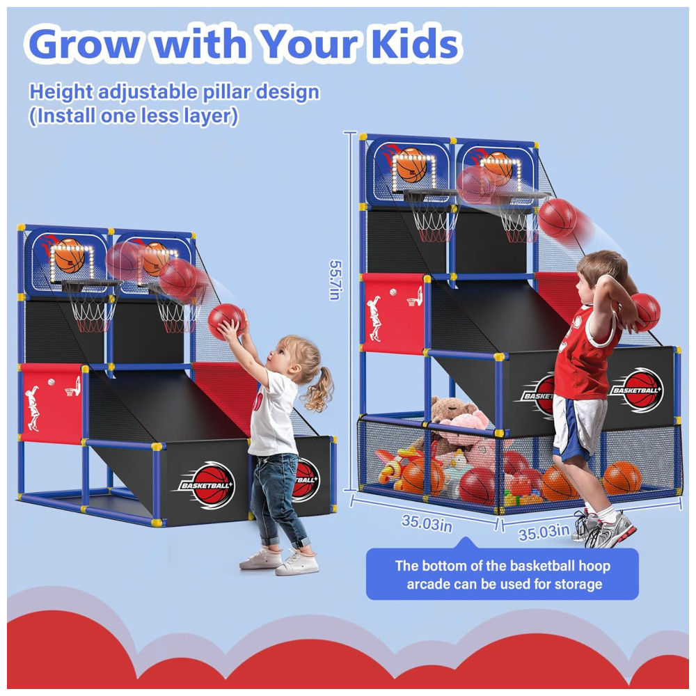Presente Perfeito para Crianças: Este jogo de basquete arcade indoor é ideal para manter as crianças ativas e engajadas, longe de telas. Ele aprimora habilidades de basquete, promove a perseverança, o trabalho em equipe e a competição. Um presente perfeito para aniversários, Halloween, Natal ou qualquer ocasião especial, especialmente para crianças de 3 a 8 anos.