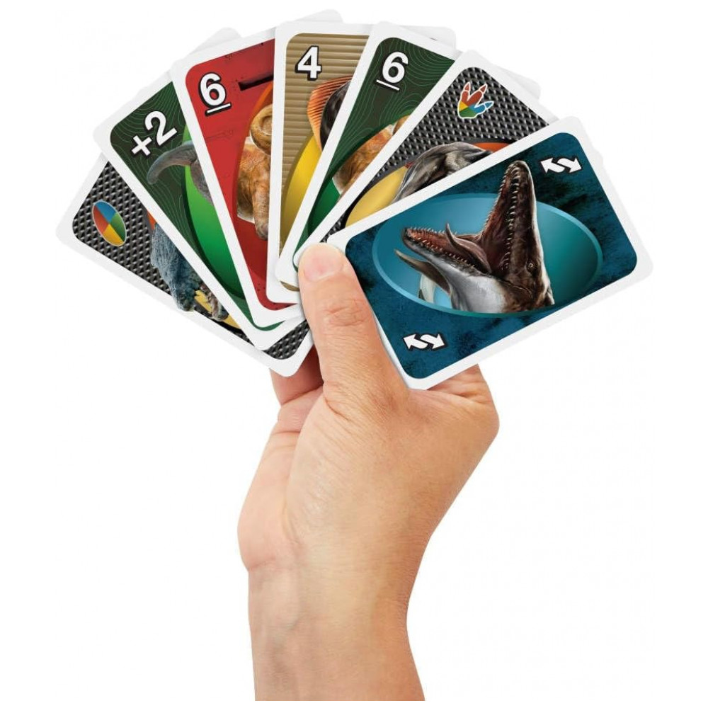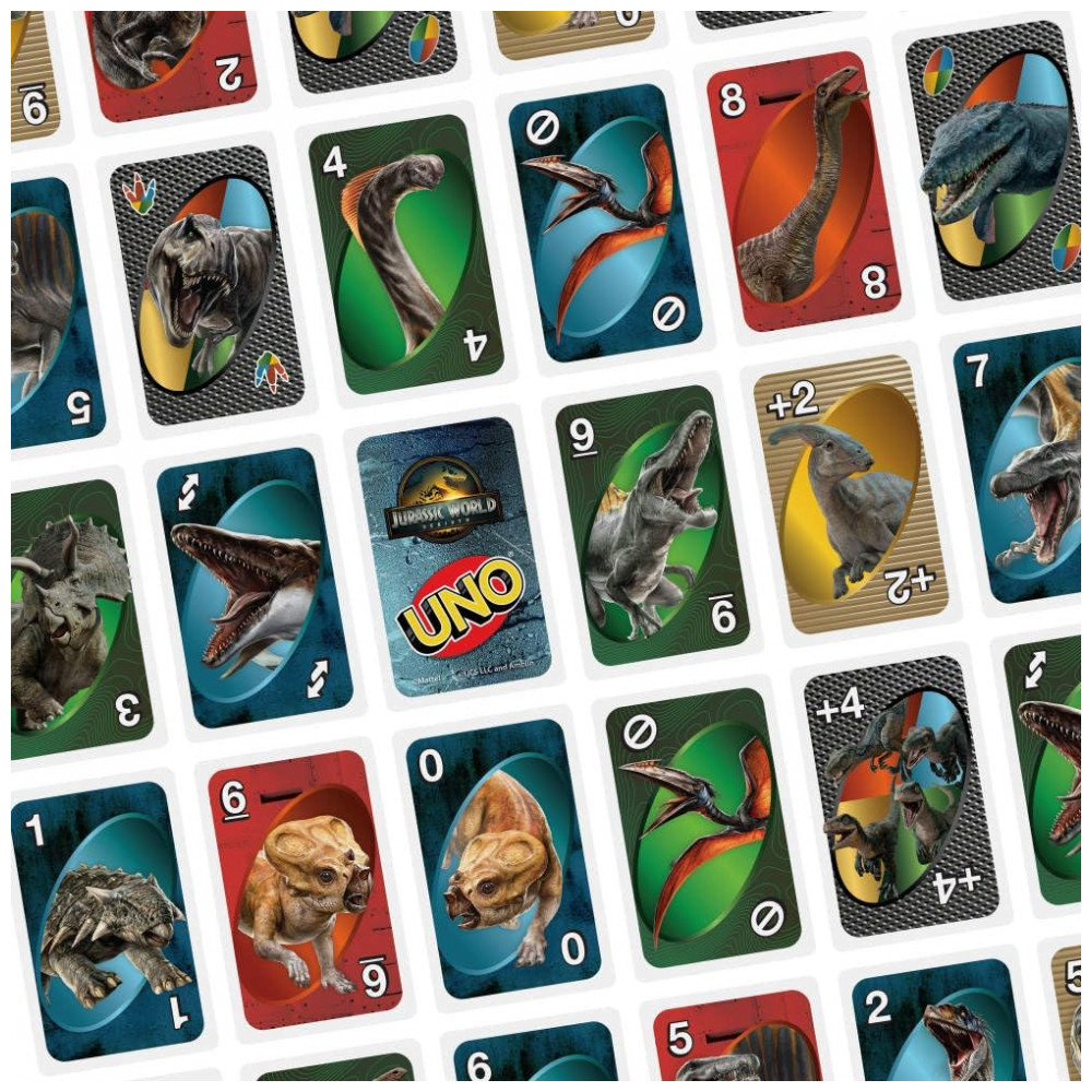 Jogo de cartas UNO Jurassic World Rebirth Mattel deck temático com regra especial Ataque do T-Rex