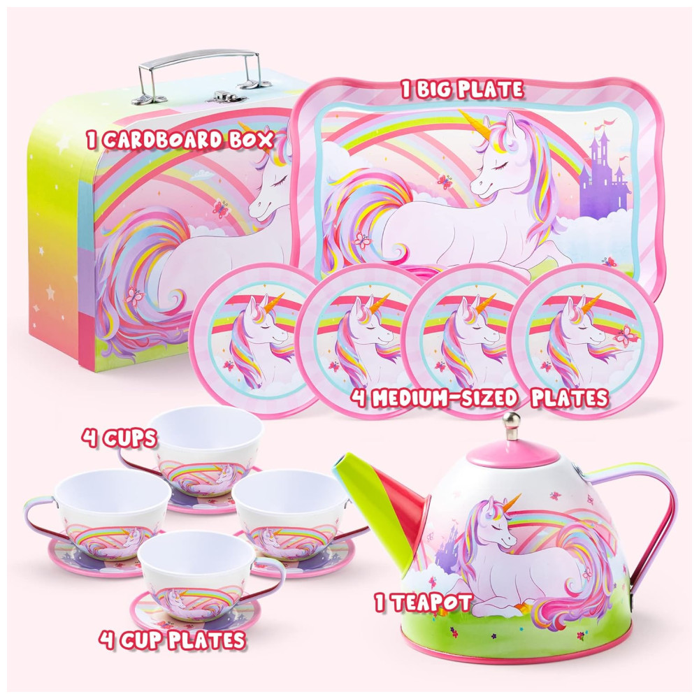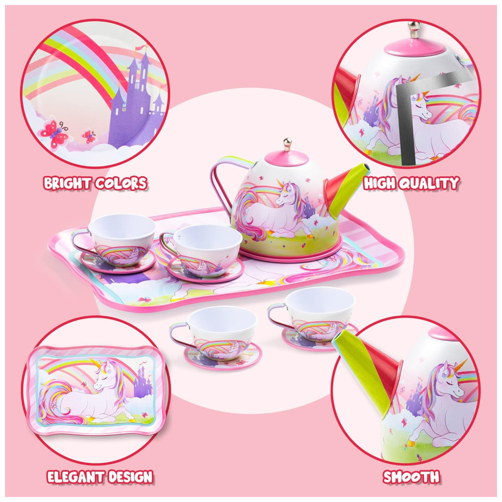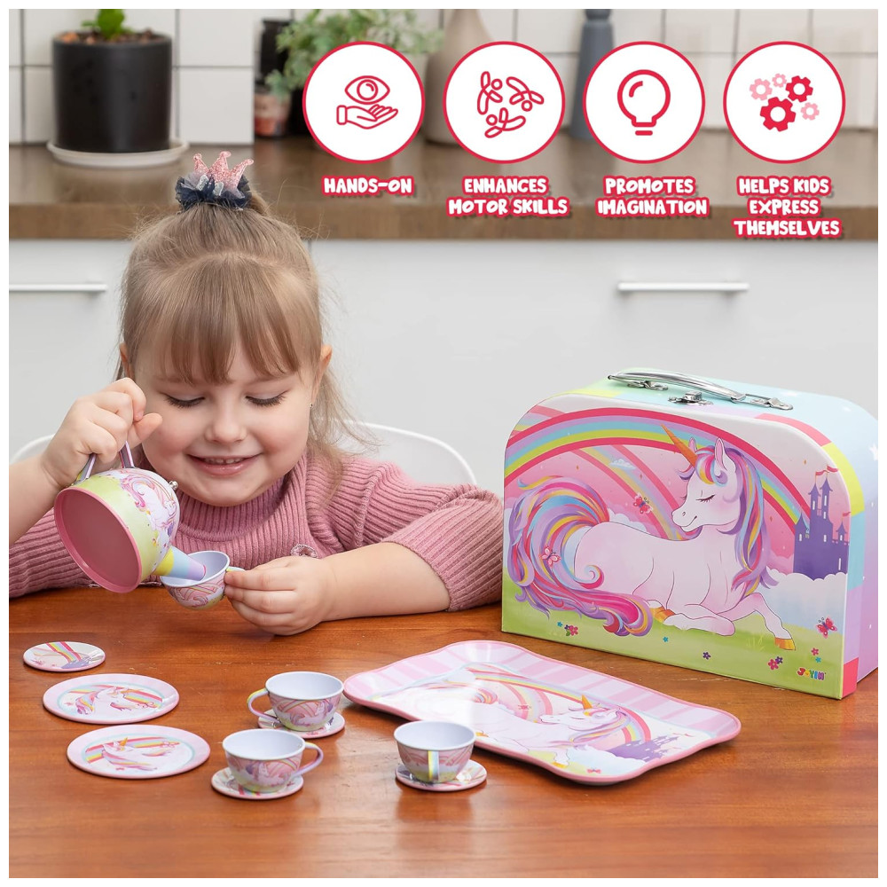 Jogo de Chá Infantil 14 Peças com Tema de Unicórnio e Maleta de Transporte para Crianças Acima de 3 Anos JOYIN Rosa