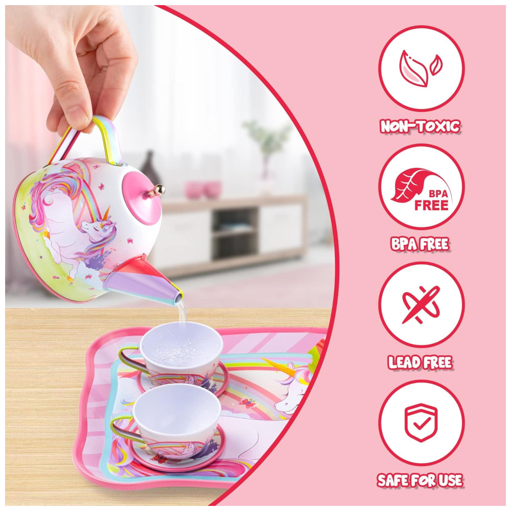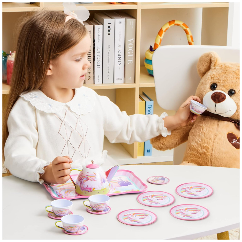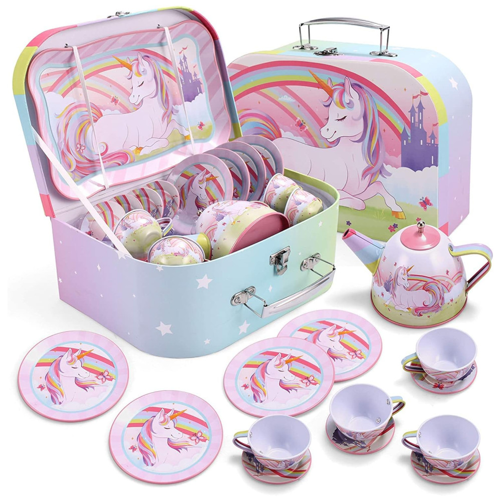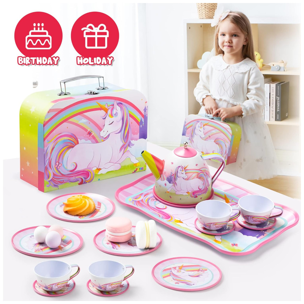 Jogo de Chá Infantil 14 Peças com Tema de Unicórnio e Maleta de Transporte para Crianças Acima de 3 Anos JOYIN Rosa