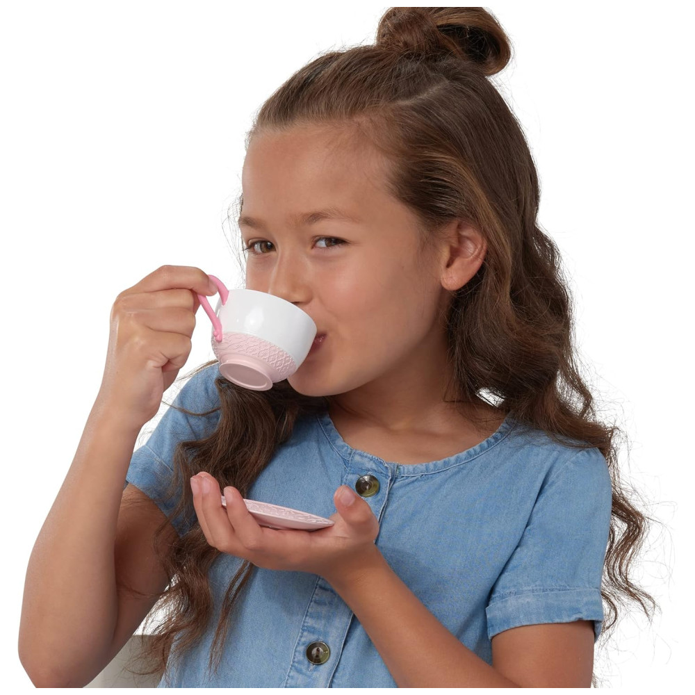 As xícaras possuem um suporte para o saquinho de chá, proporcionando um toque realista e doce à experiência. É ideal para quem deseja organizar uma festa de chá perfeita para quatro pessoas.