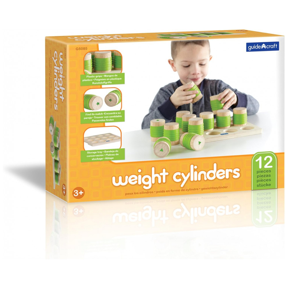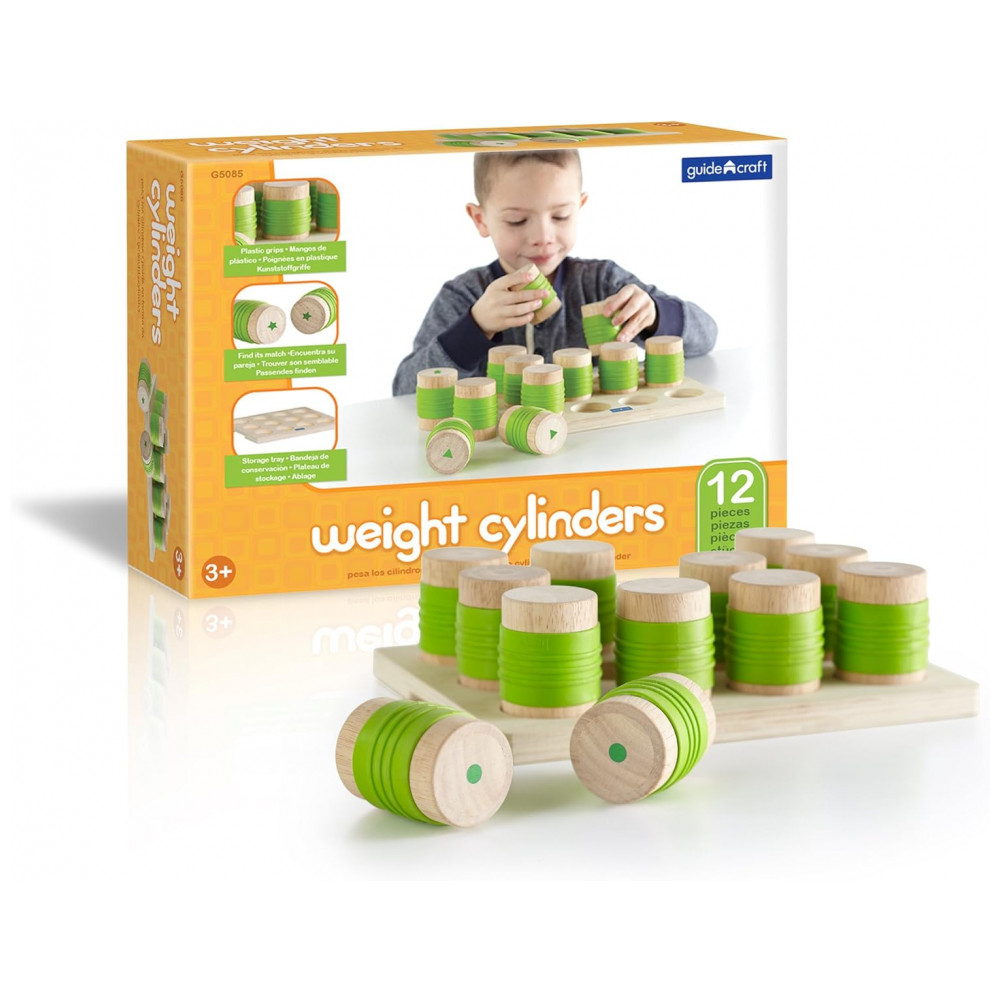 Jogo de cilindros de peso Guidecraft em madeira com bandeja de armazenamento e 12 peças para pareamento de pesos