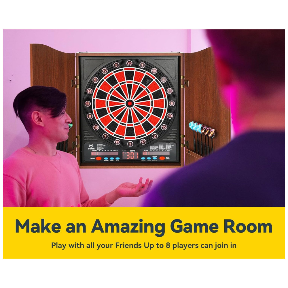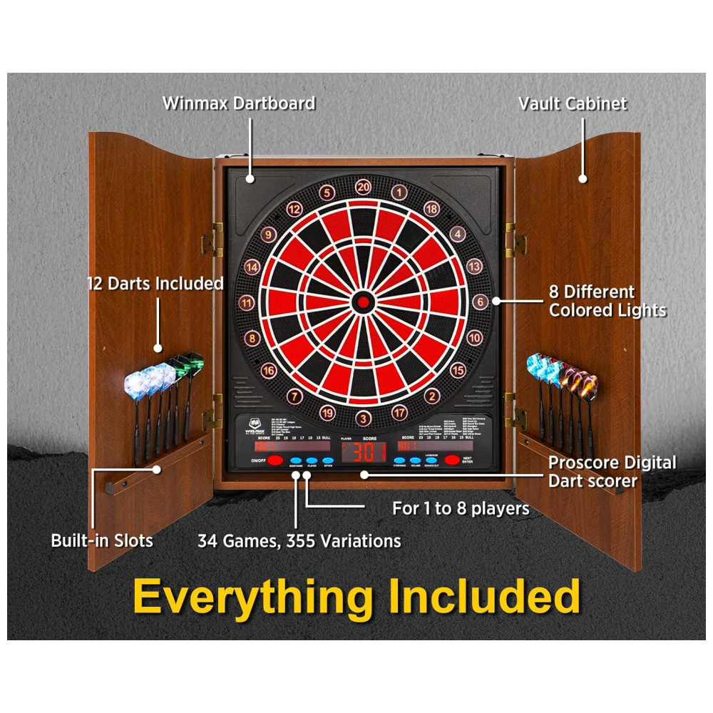 Jogo de Dardos Eletrônico 12 Dardos 34 Modos de Jogo e 355 Variações de Pontuação com Gabinete de Madeira Maciça para até 8 Jogadores WIN.MAX WMG86407 Marrom