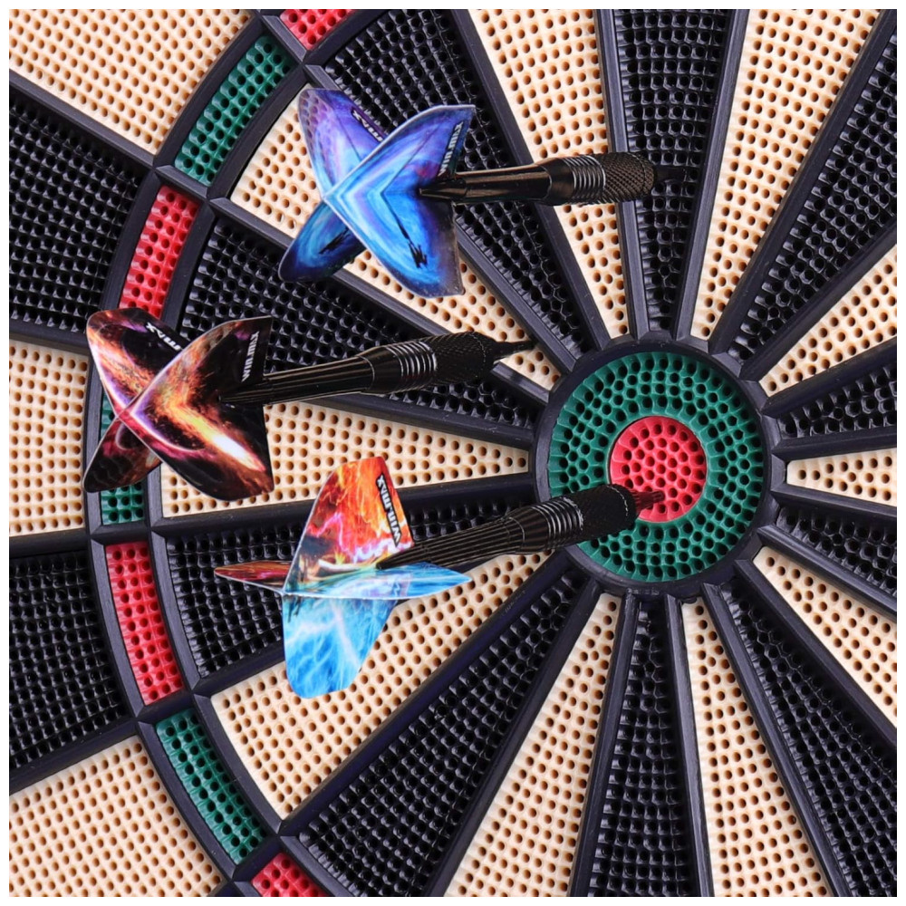 O gabinete ABS resistente inclui slots embutidos para armazenar até quatro conjuntos de dardos e acessórios. O conjunto vem com barris ergonomicamente projetados para conforto máximo, 12 eixos de alumínio para estabilidade dos vôos, 20 Orings de borracha para segurança e 24 vôos Polypro padrão para trajetórias precisas. Também inclui um protetor de vôo e uma ferramenta multiuso Dart.