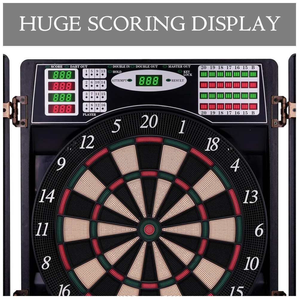 Os segmentos côncavos e o fio ultrafino minimizam os ressaltos, enquanto um anel de captura amplo protege suas paredes de danos, oferecendo uma área de aterrissagem de 360 graus para qualquer dardo perdido. O display de LED frontal e o painel de controle intuitivo garantem uma visualização clara das pontuações e estatísticas, eliminando a necessidade de anotações manuais. O volume ajustável em 7 níveis permite ajustar o som conforme sua preferência.