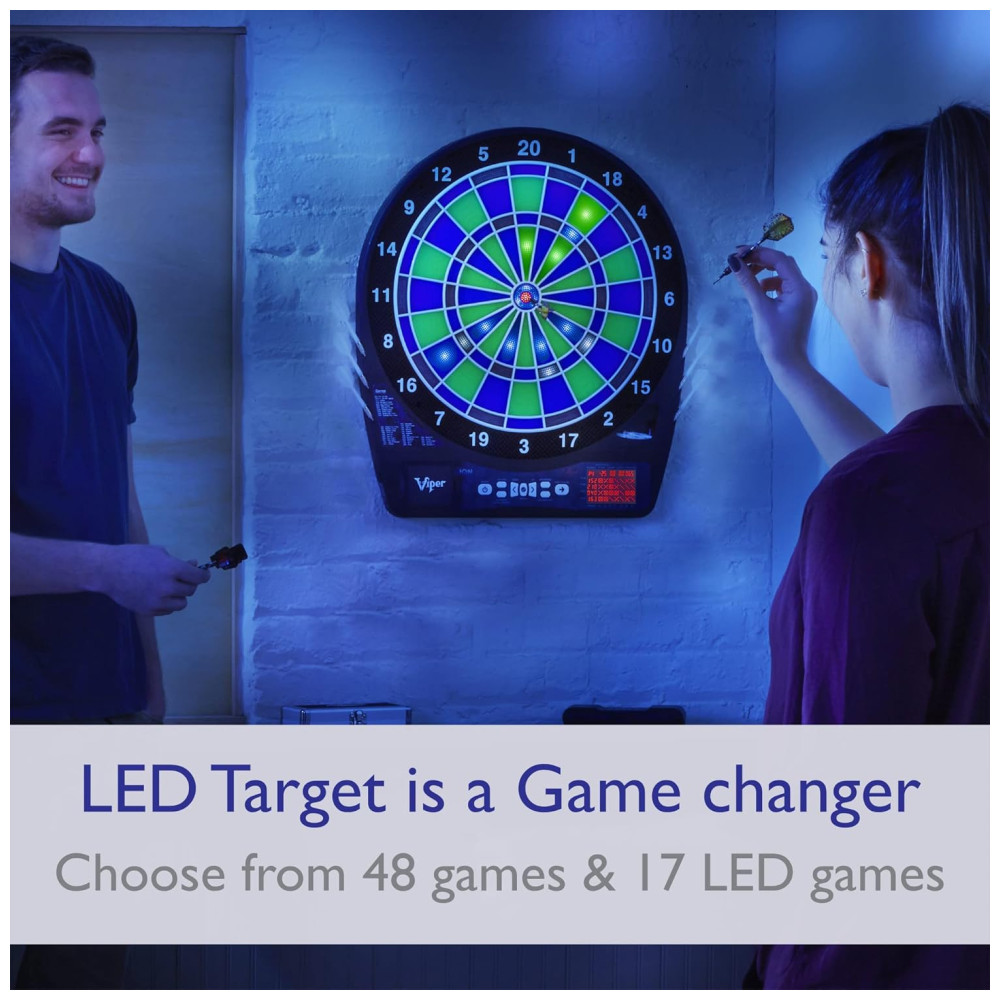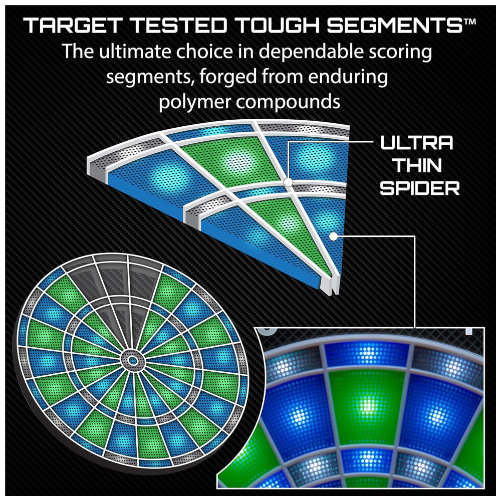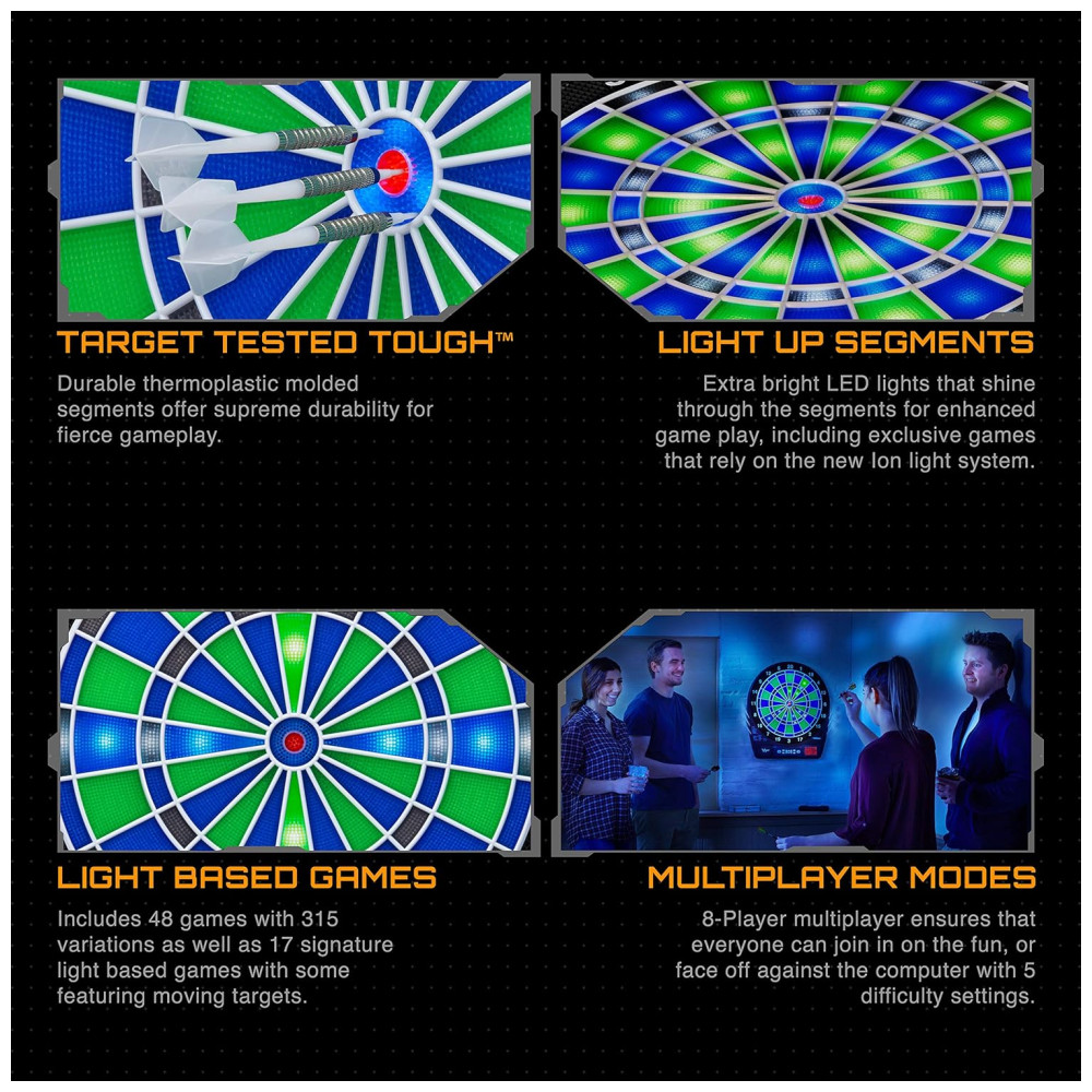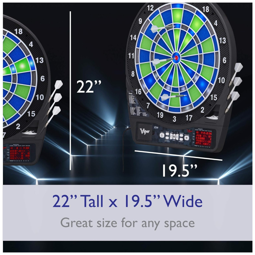Jogo de Dardos Eletrônico Ion Segmentos Iluminados Jogos com Luzes Cores Verde e Azul Ultra Fino para Maior Área de Pontuação8 jogadores Viper.