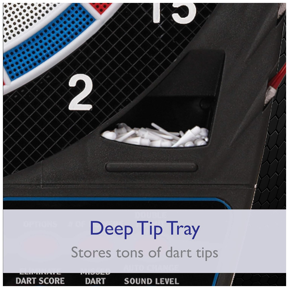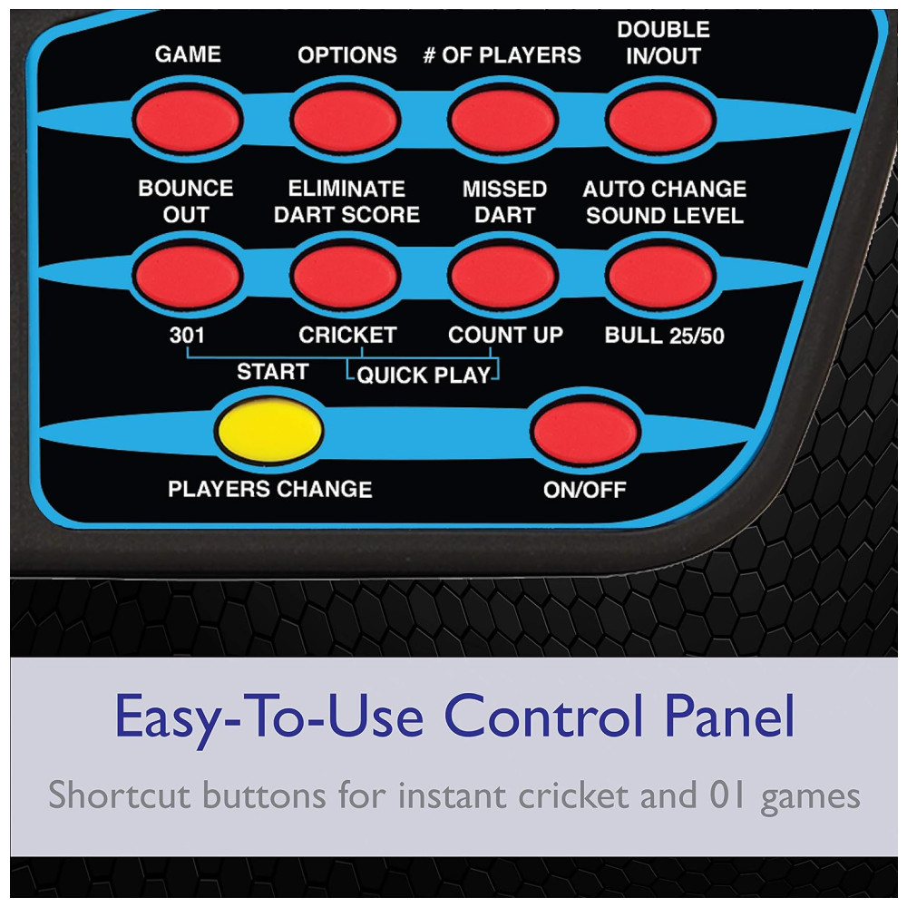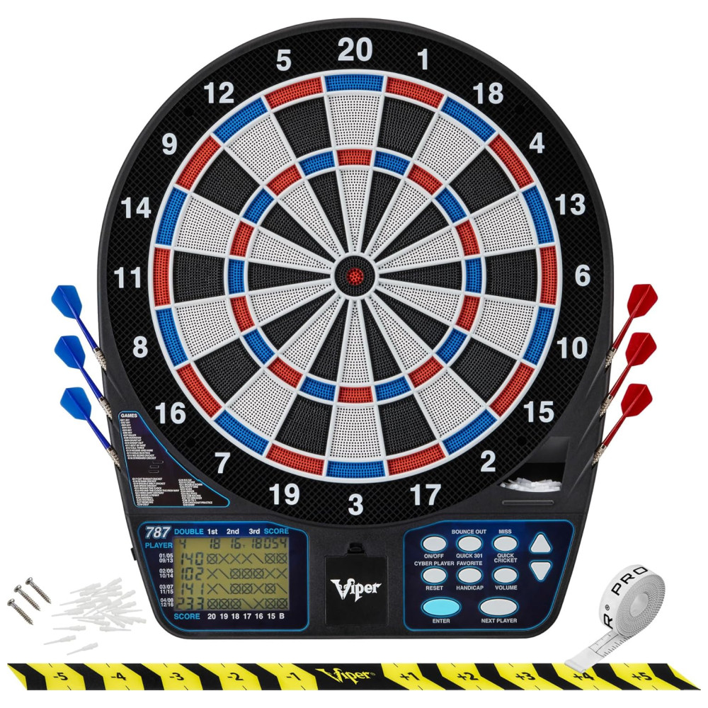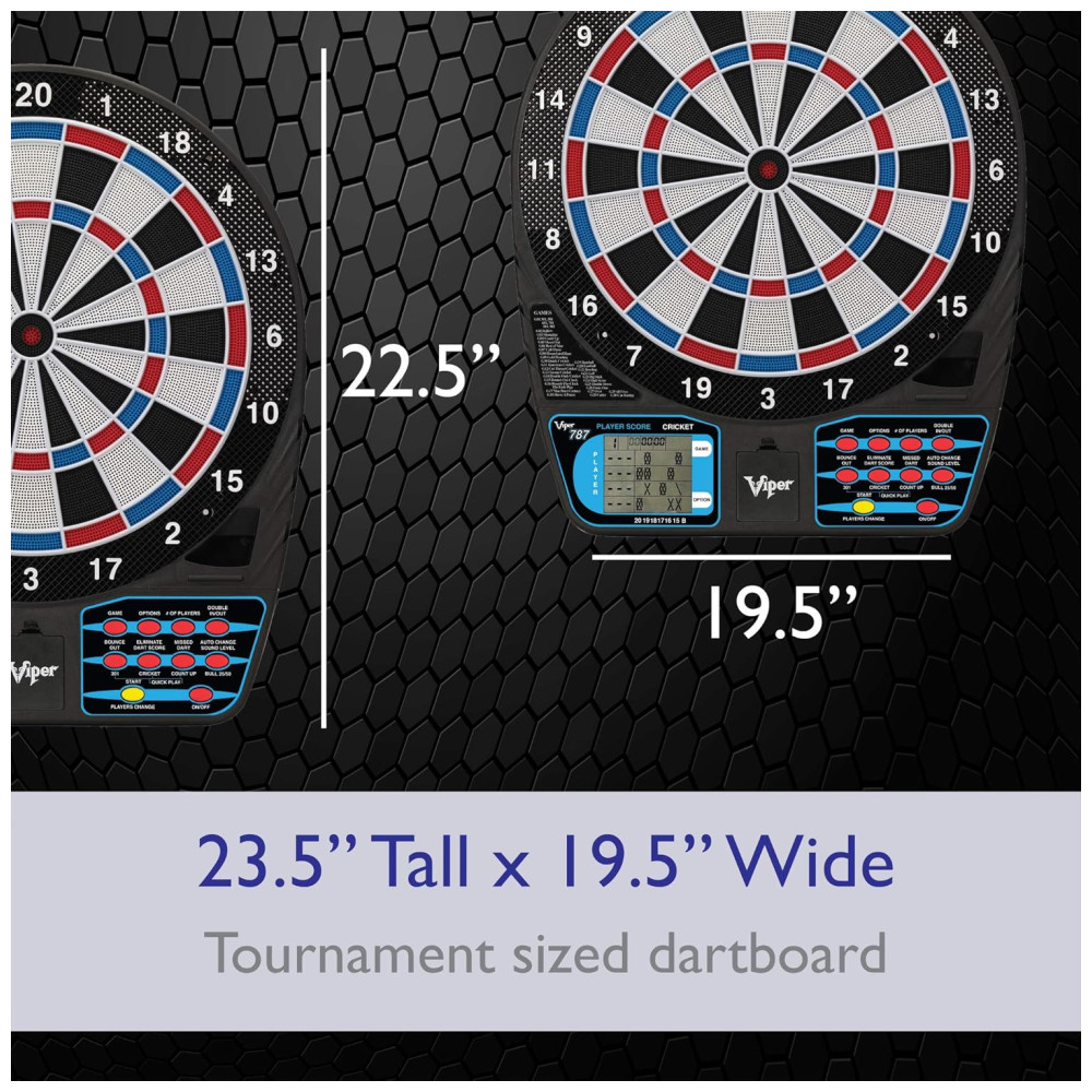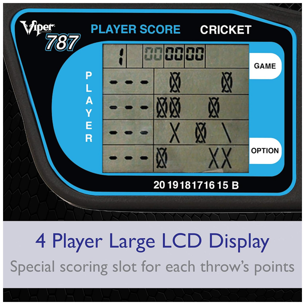 Componentes Incluídos: Tabuleiro de dardos eletrônico Viper 787, estrutura ultrafina para maior área de pontuação, segmentos flutuantes, orifícios com travamento para reduzir rebotes e pontuação automática