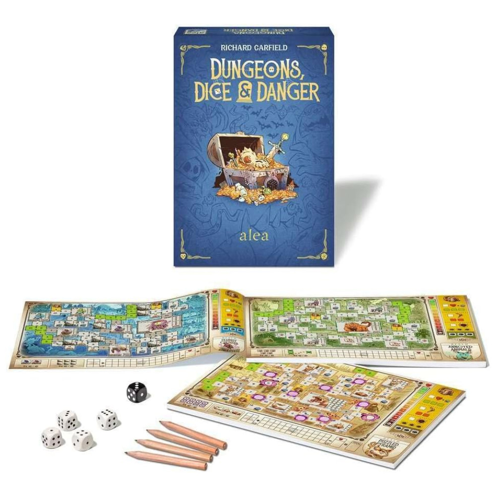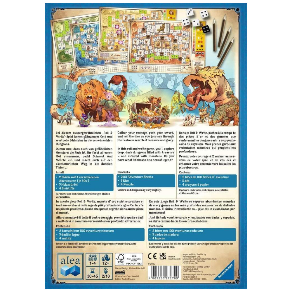 Embarque em uma jornada emocionante com o jogo Dungeons, Dice Danger da Ravensburger. Criado por Richard Garfield, este jogo de estratégia convida você a explorar perigosos calabouços e duelar com monstros temíveis em busca de tesouros e glória. Navegue por quatro reinos ilustrados de forma única – Animais Irritados, Dinossauros Defiantes, Pirâmides Perplexas e Cultistas Desajeitados – cada um oferecendo um desafio distinto. Seja enfrentando os calabouços sozinho ou compartilhando a aventura com amigos, a dificuldade escalonável do jogo atende a todos os níveis de habilidade. Cada pacote do jogo vem equipado com 200 folhas de missão, 5 dados, 4 lápis e regras do jogo em cinco idiomas diferentes. Ideal para noites de jogo ou como um presente atencioso para entusiastas de quebra-cabeças e jogos. Confie nos mais de 130 anos de tradição da Ravensburger em criar jogos de qualidade que estimulam a mente, desafiam habilidades e proporcionam diversão cativante.