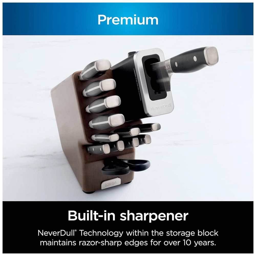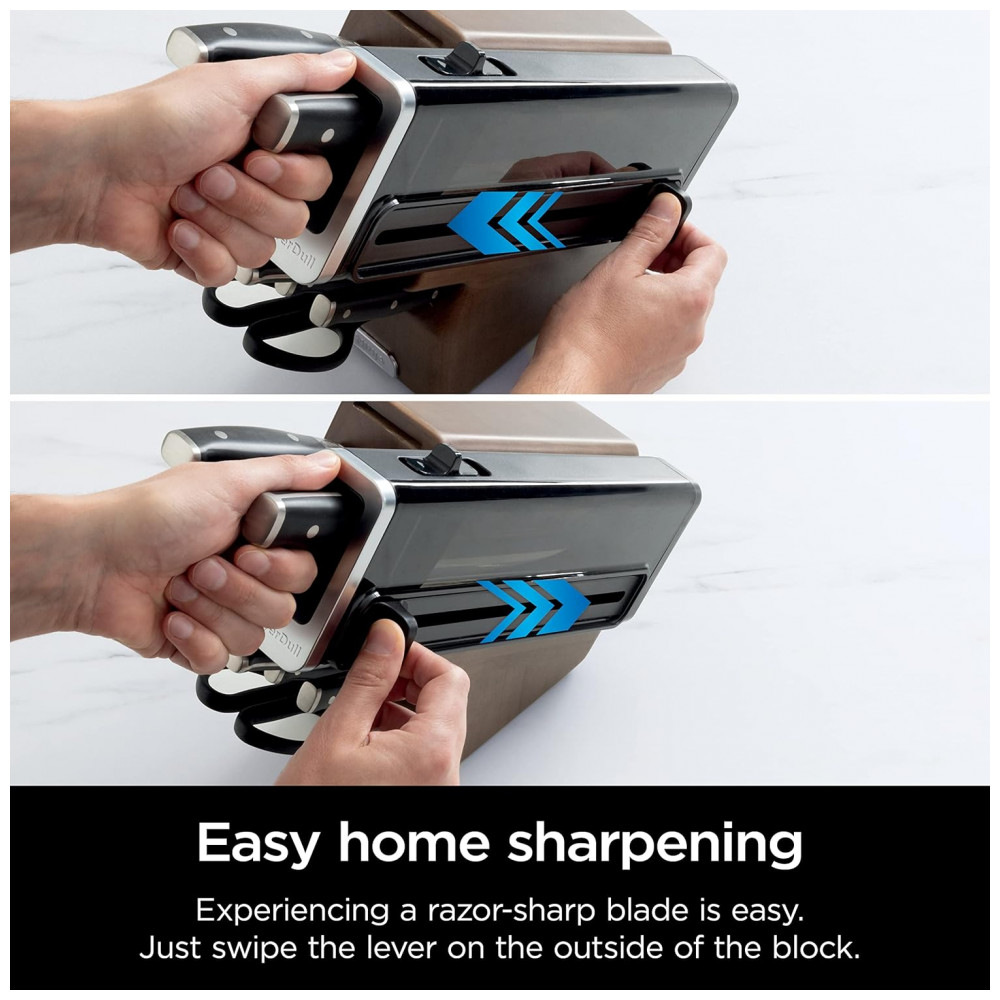 Jogo de Facas Ninja NeverDull Wood Series 13 Peças Aço Inox Alemão Bloco em Madeira com Afiador Integrado