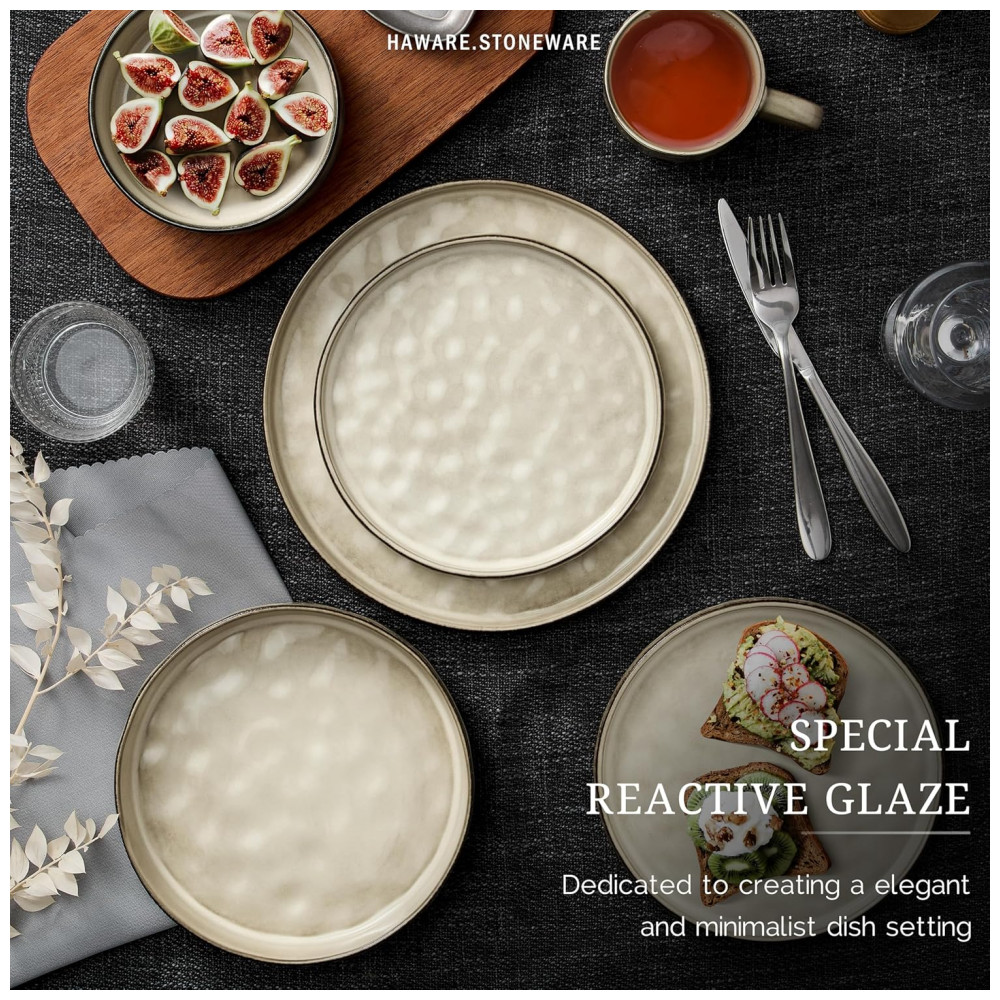 Conjunto de Louças HaWare COSMOS 12 Peças em Stoneware Resistentes a Lascar e Riscar Micro-ondas e Lava-Louças Cor Saturn Khaki