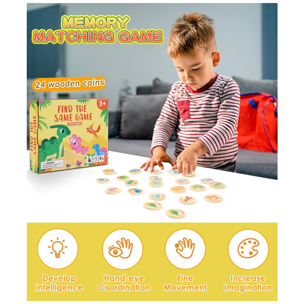 Este conjunto de jogos educacionais de memória é ideal para crianças em idade pré escolar. Com uma combinação de padrões de dinossauros e brinquedos de memória, o jogo ajuda a melhorar a concentração, correspondência e memória das crianças. Feito de madeira natural, o cartão Memory Match é seguro e durável, sem rebarbas para as crianças brincarem. Os padrões são impressos com tinta não tóxica e tratados termicamente para maior durabilidade e resistência a arranhões e água. Os cantos são polidos para garantir que não haja rebarbas. O jogo foi testado por um laboratório independente e considerado inofensivo para os seres humanos.