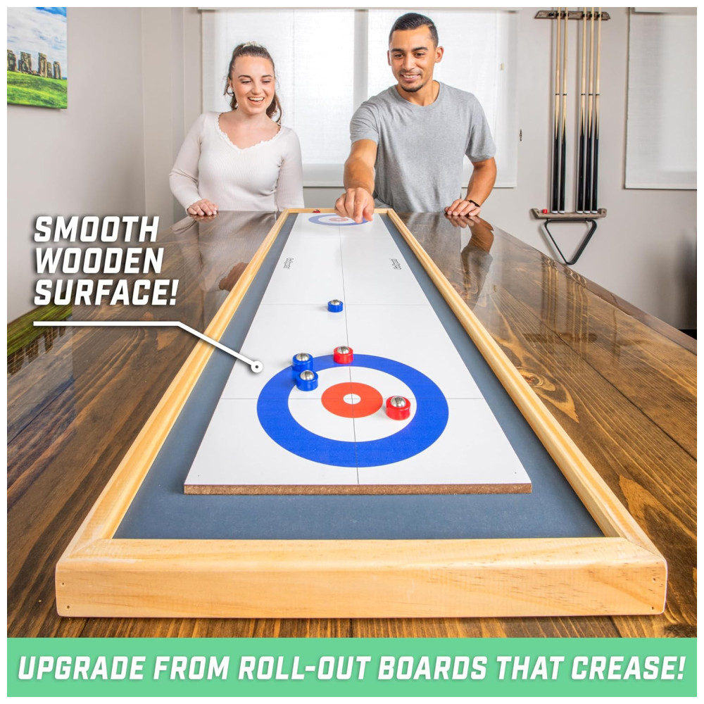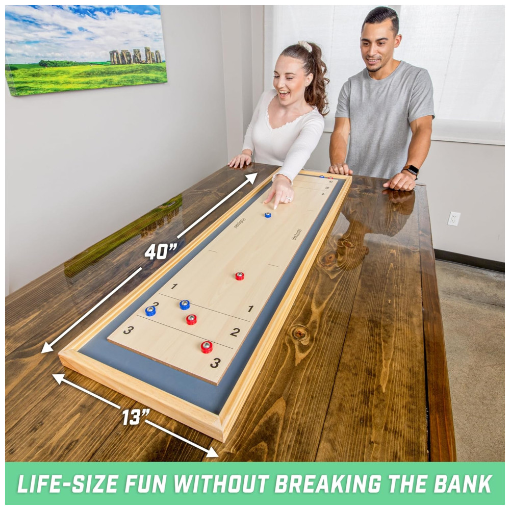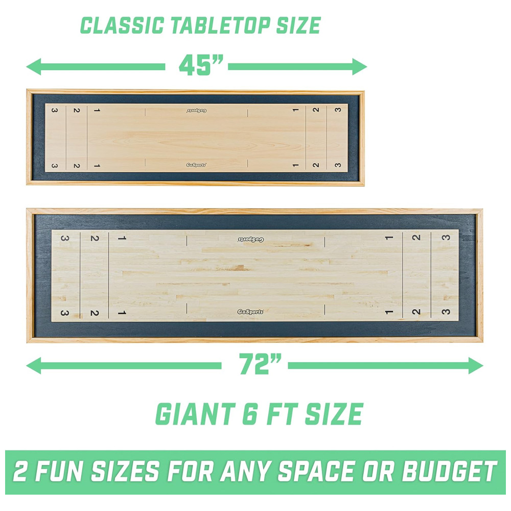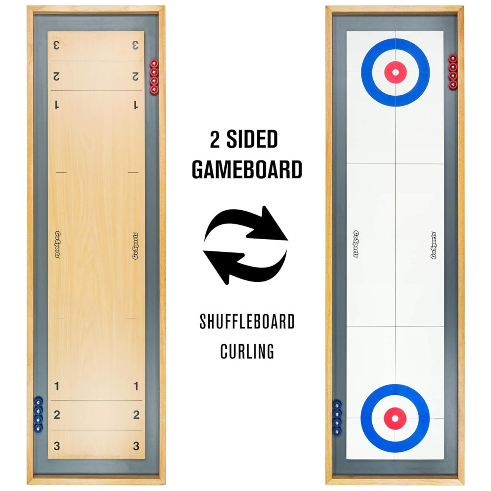 Jogo de Mesa Shuffleboard e Curling 2 em 1 Clássico de Mesa ou Tamanho Gigante Escolha o Seu Estilo para até 4 Jogadores GoSports