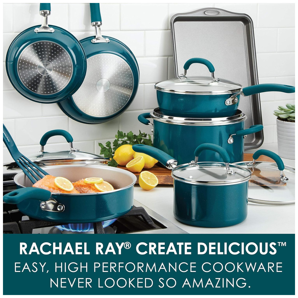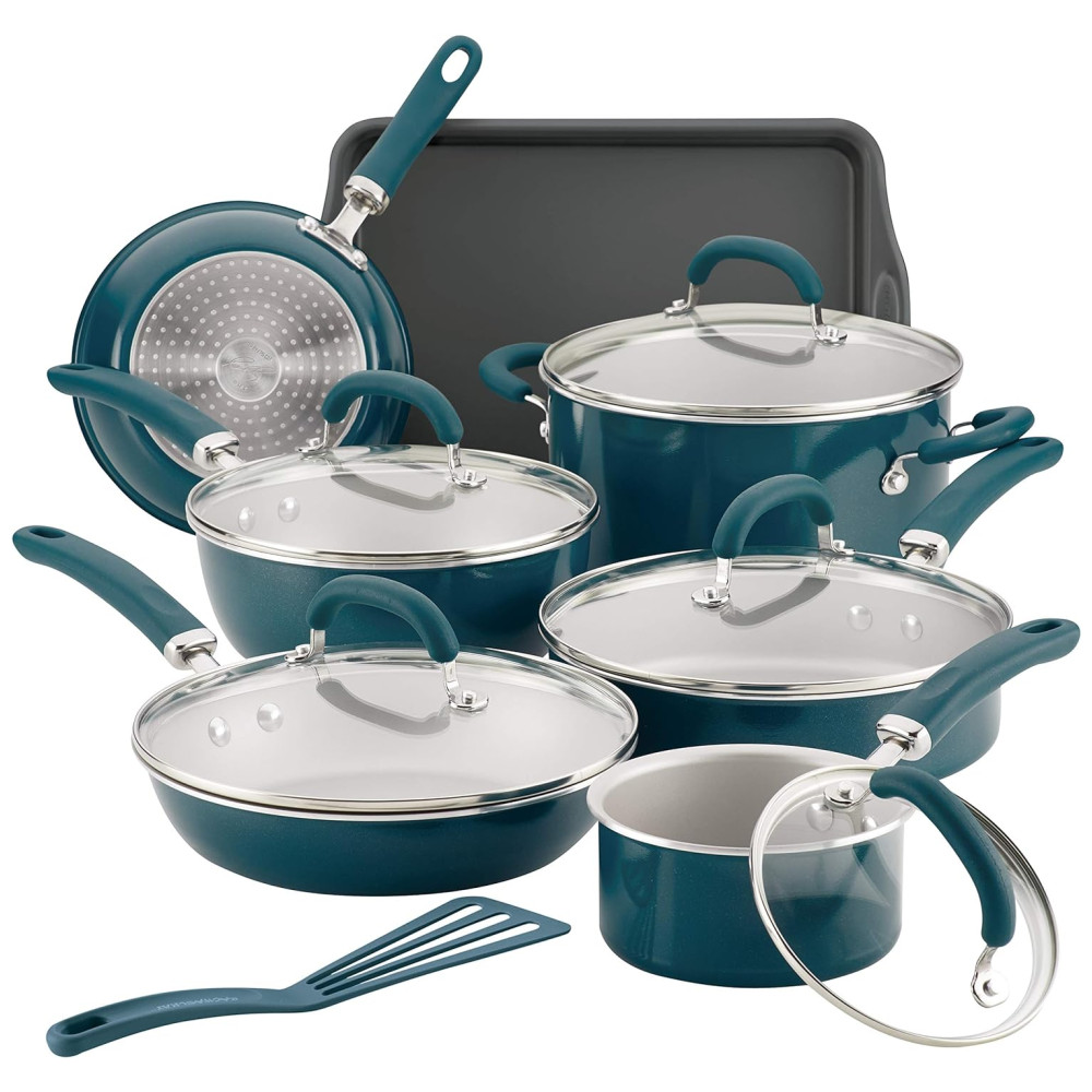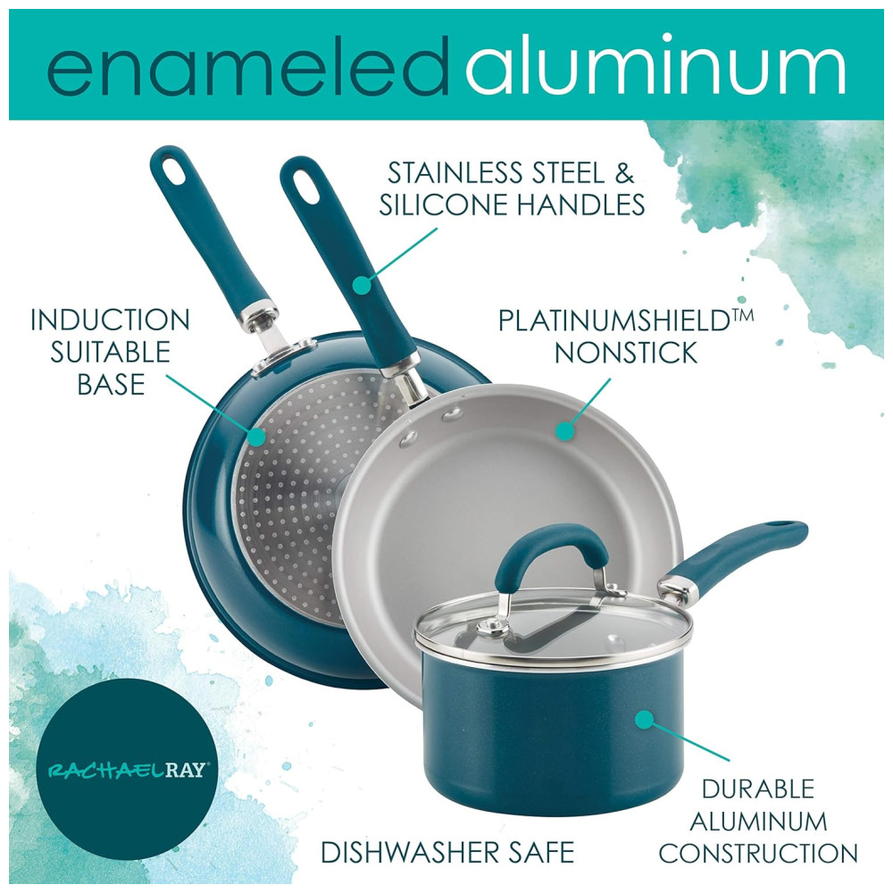 Jogo de Panelas 13 peças com Revestimento Antiaderentes Rachael Ray Azul Petróleo