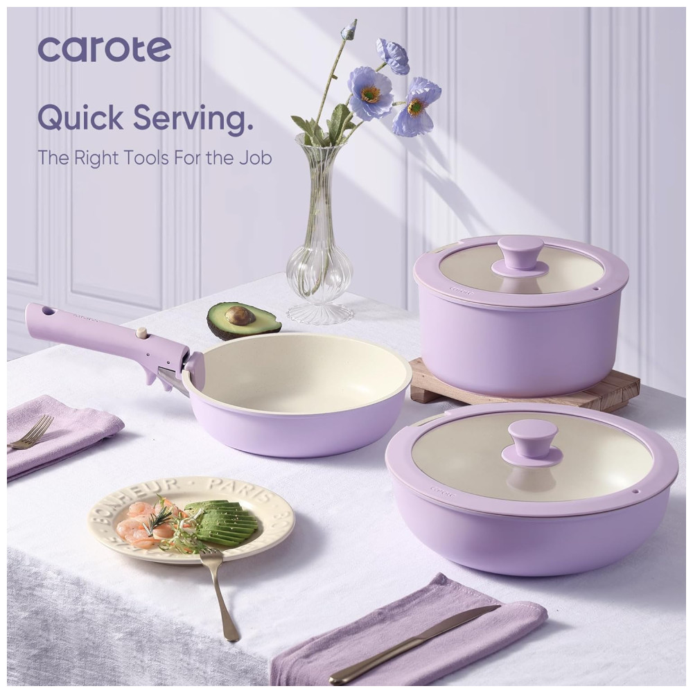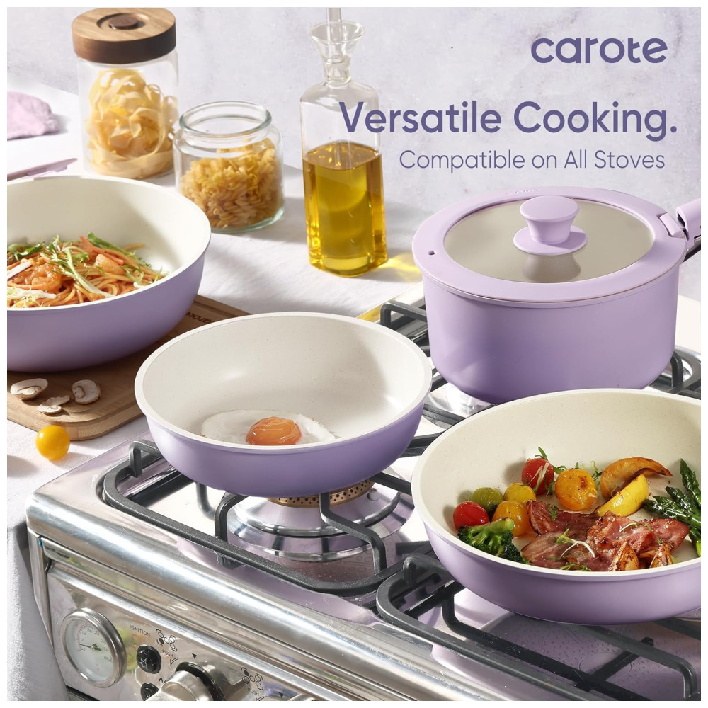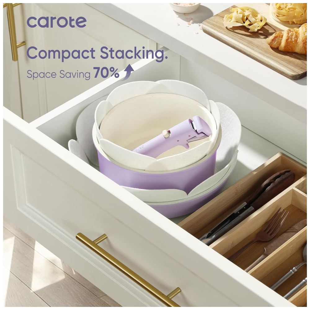 Jogo de Panelas Antiaderente CAROTE 15 peças – Roxo: Economize Espaço Versátil e Prático!