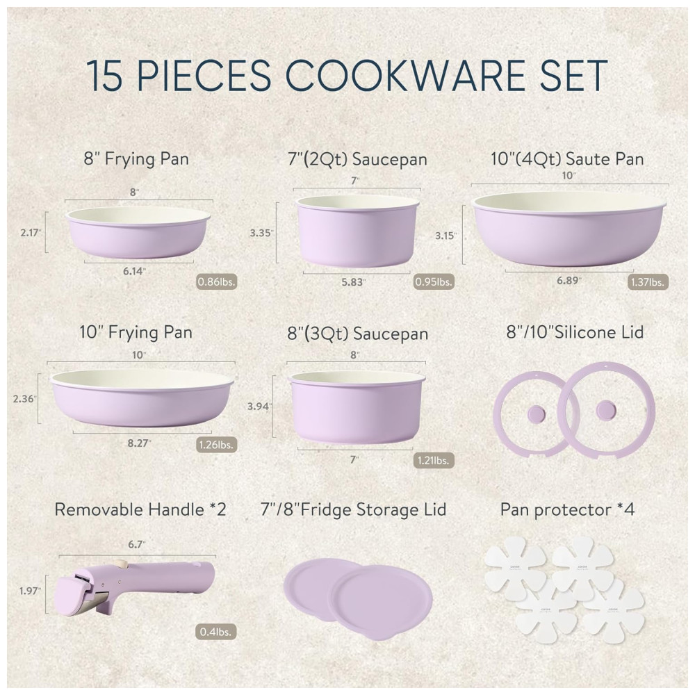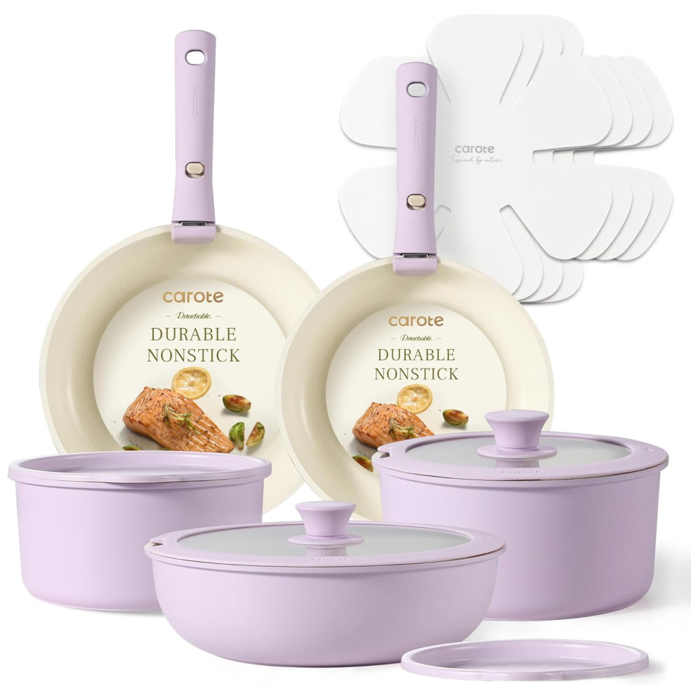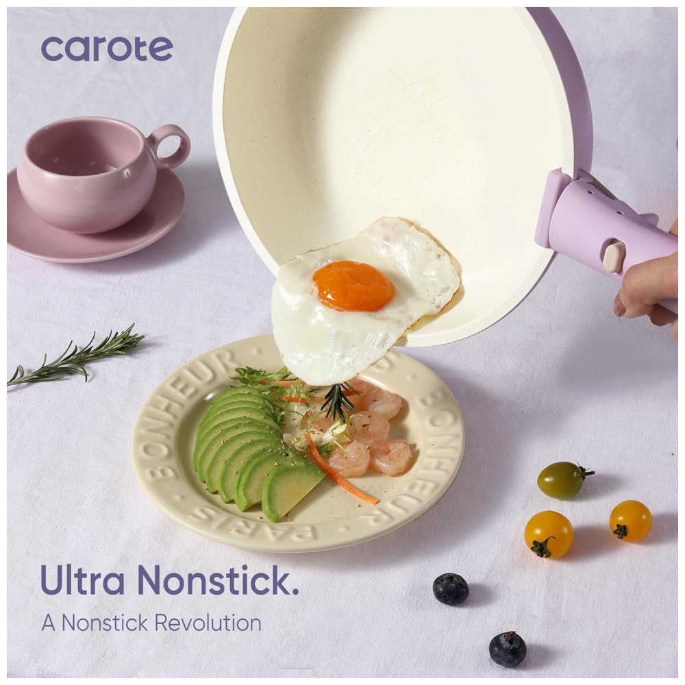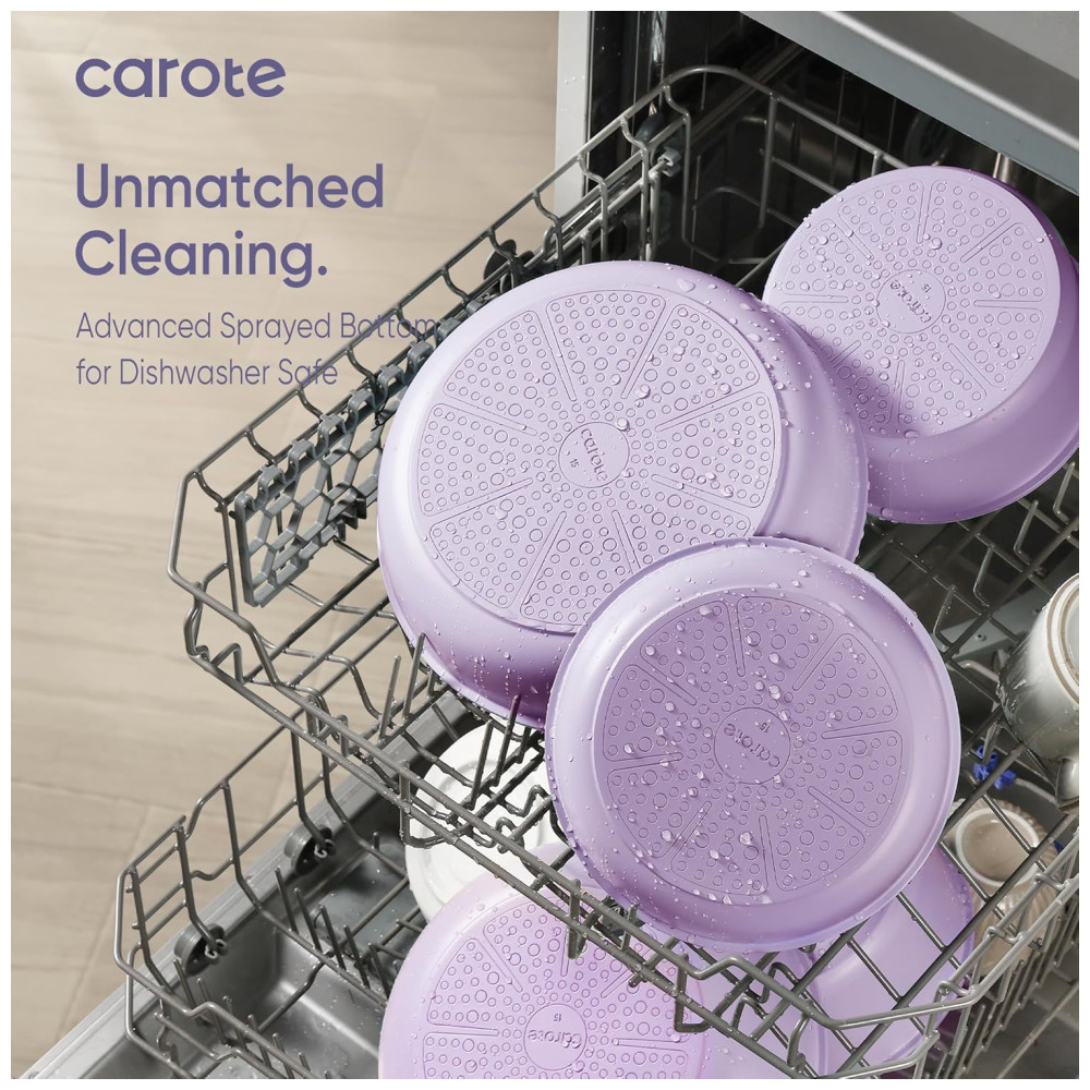 Jogo de Panelas Antiaderente CAROTE 15 peças – Roxo: Economize Espaço Versátil e Prático!
