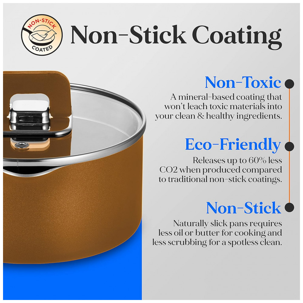 REVESTIMENTO ANTI ADERENTE: O conjunto de panelas antiaderentes sem PTFE, PFOA, PFOS apresenta um revestimento antiaderente de longa duração para fácil liberação de alimentos, limpeza e cozimento saudável. Forno até 175 C e distribui e retém eficazmente o calor para cozinhar uniformemente.
