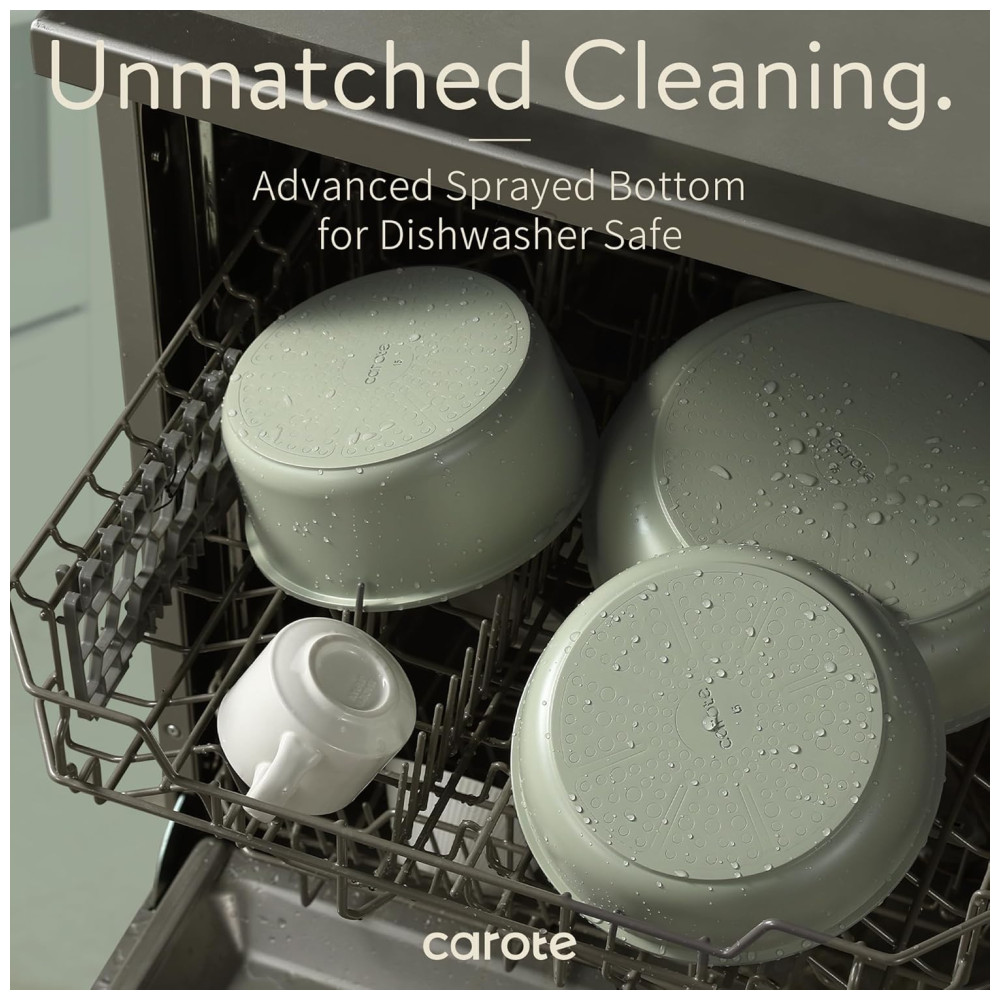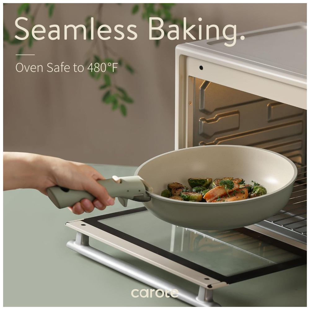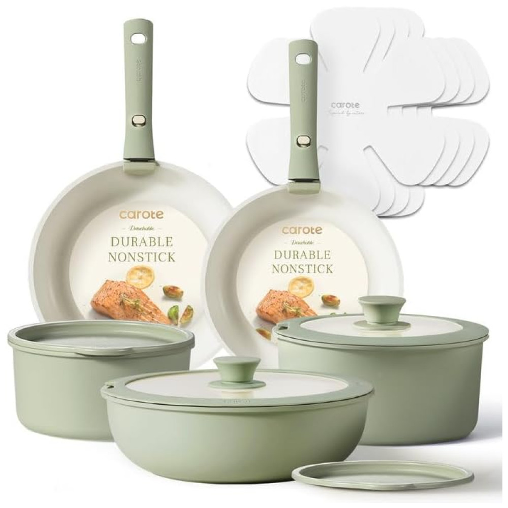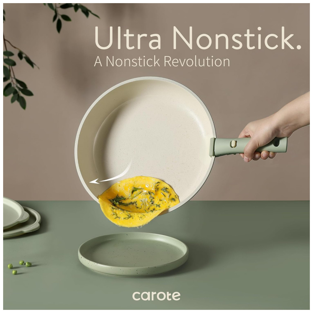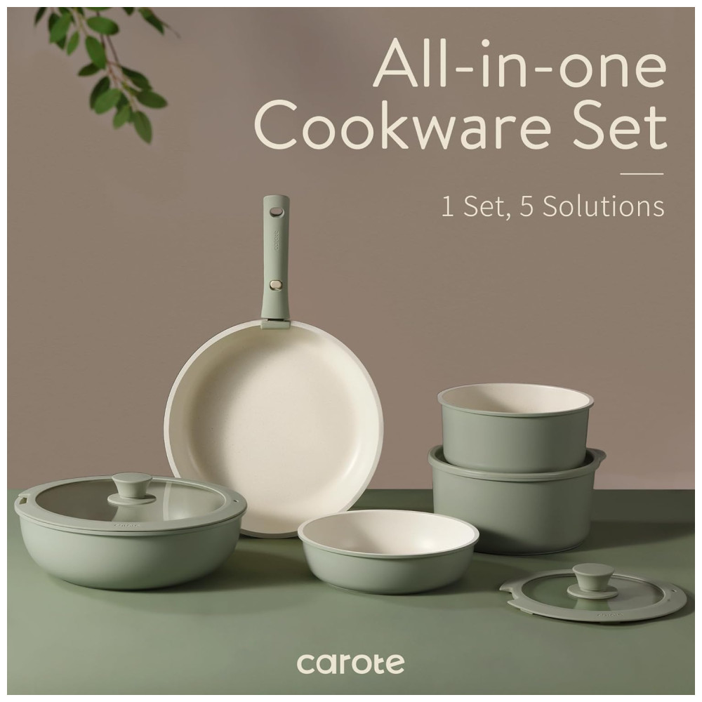 Jogo de Panelas CAROTE Jogo de Utensílios de Cozinha Antiaderente com Cabo Removível 15 peças Verde Sálvia